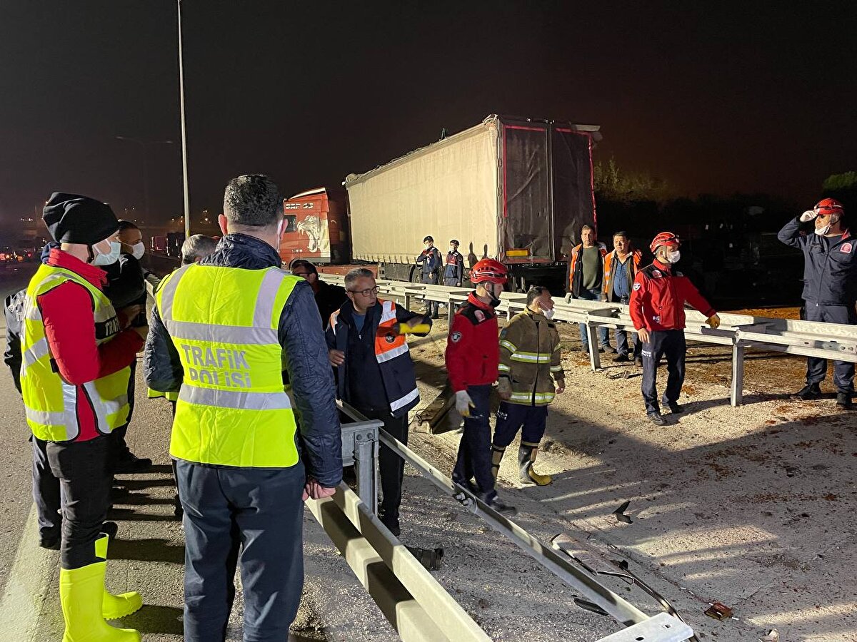 Önceki gece, Balıkesir-Bursa karayolunun 15. kilometresindeki Yeniköy mevkisinde, C.U. (55) yönetimindeki 10 AGD 046 plakalı TIR’dan yola dökülen salçalardan dolayı kayan 18 araç birbirine çarptı.