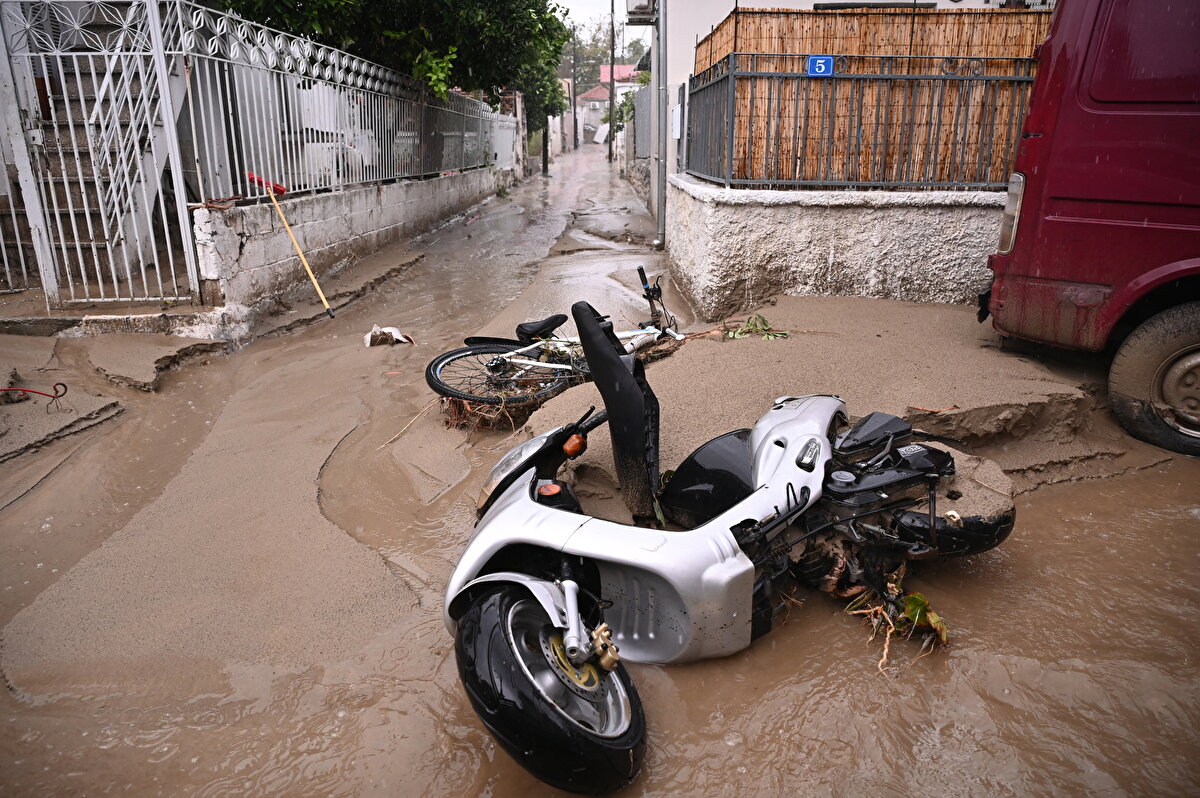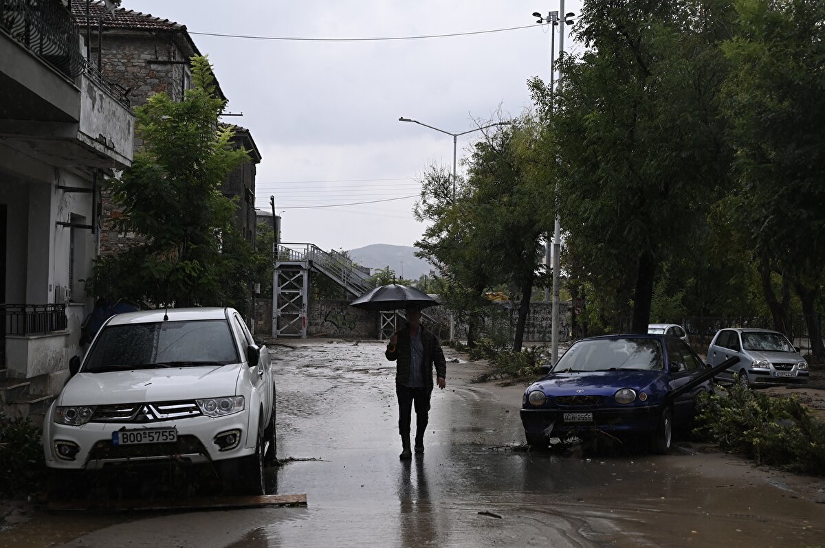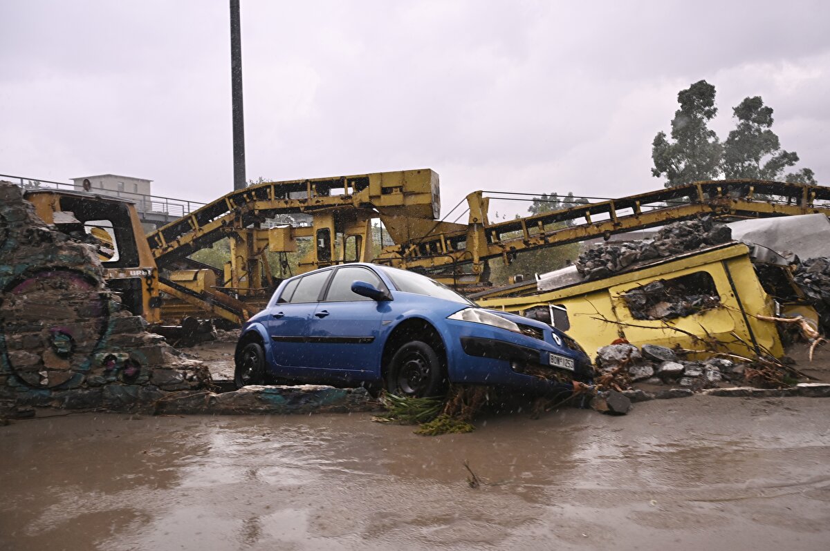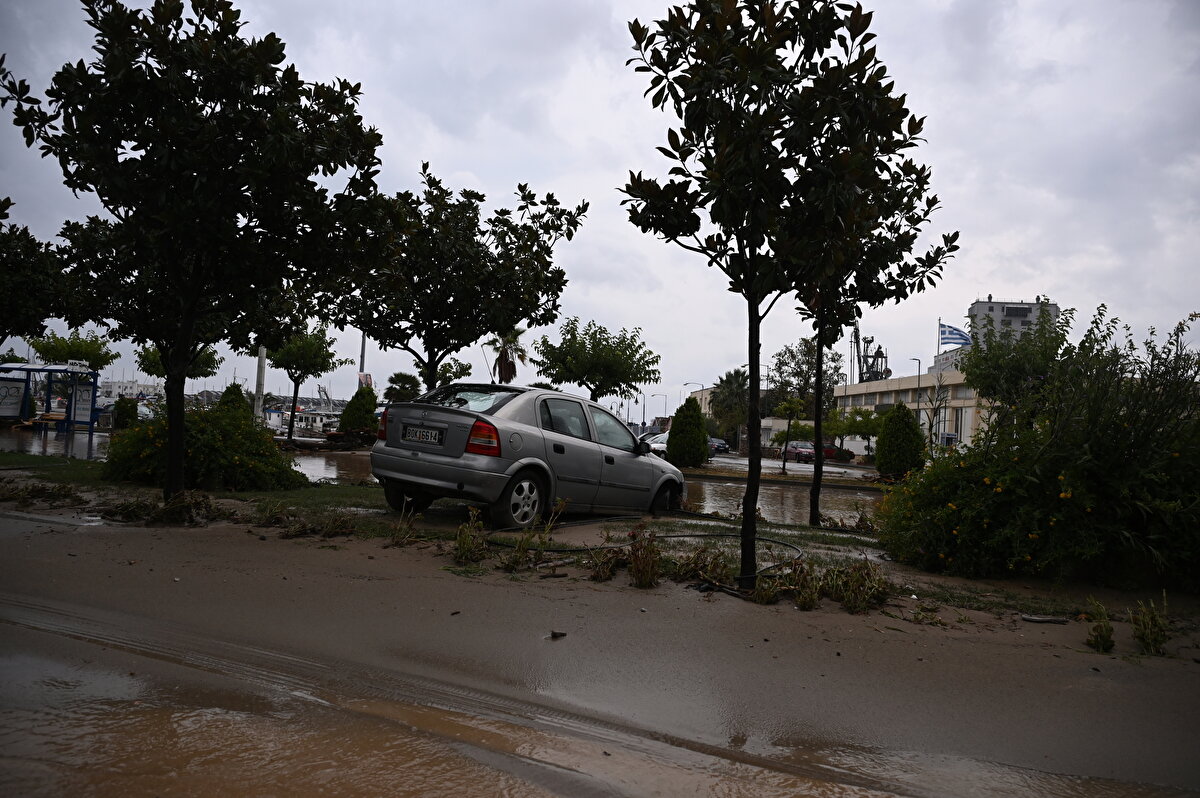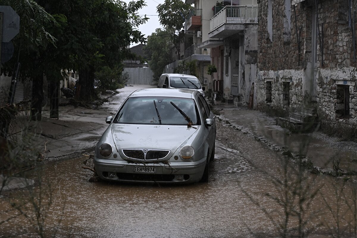Ülke tarihinin en şiddetli yağışına maruz kalan Yunanistan, Volos kentinde sel baskını sonrası meydana gelen hasar görüntülendi.