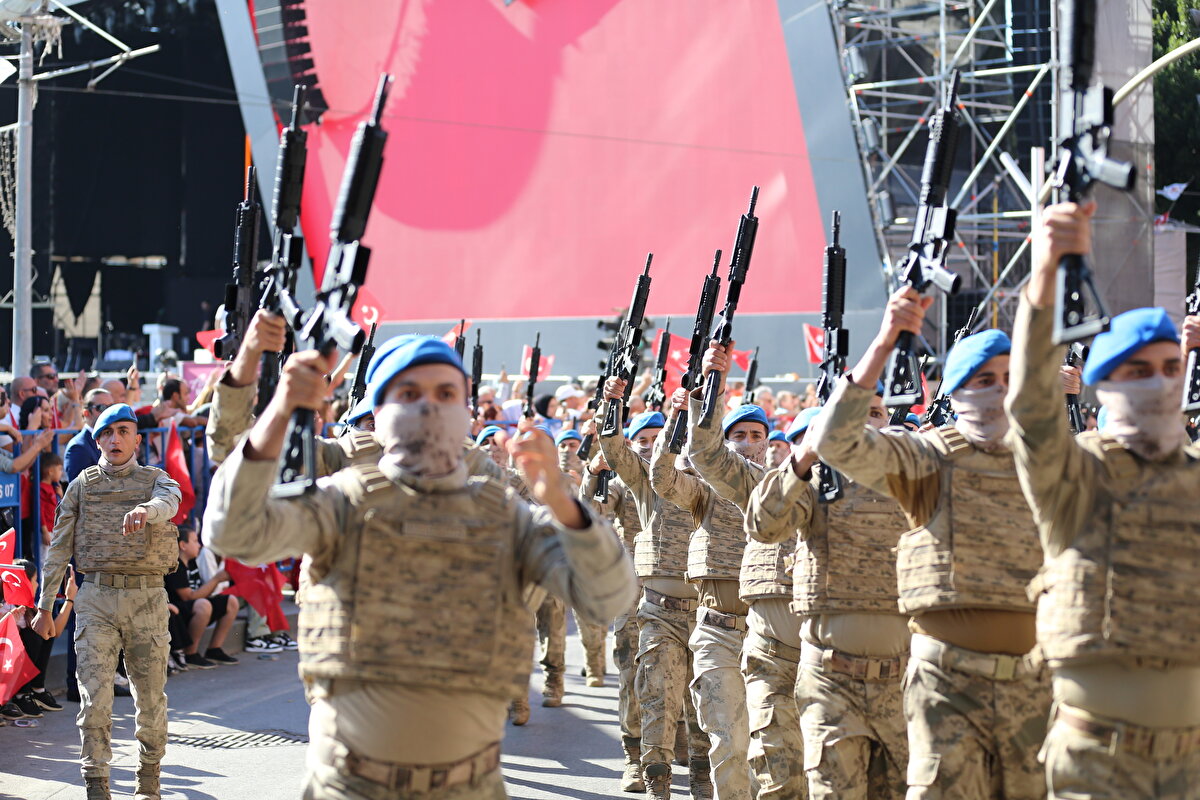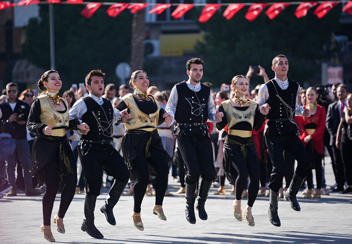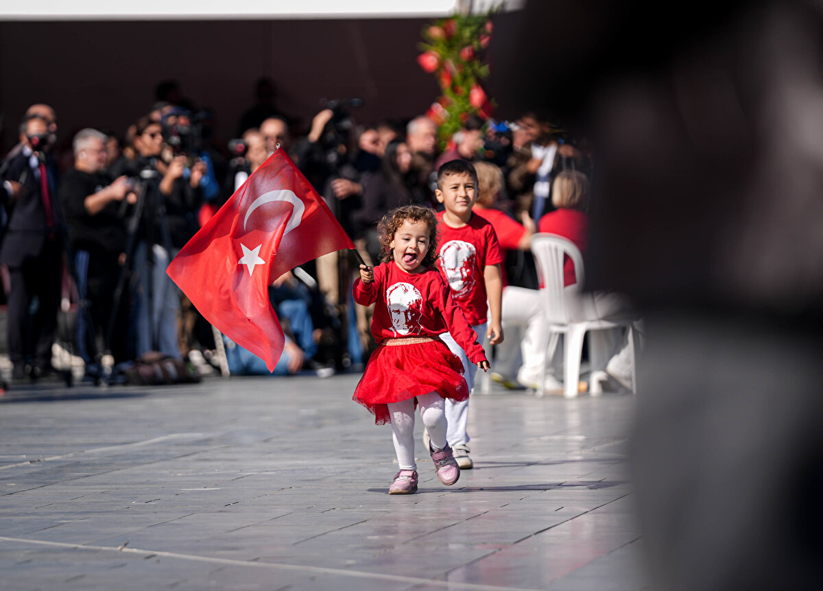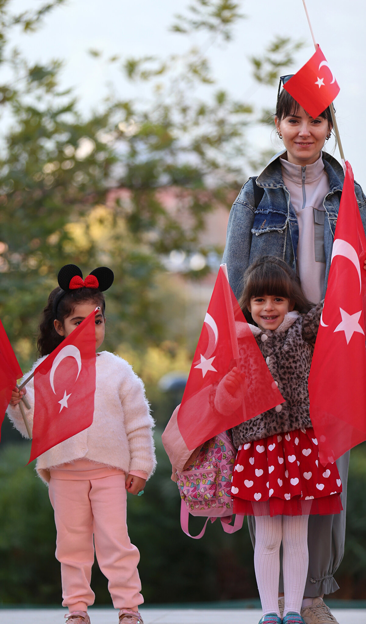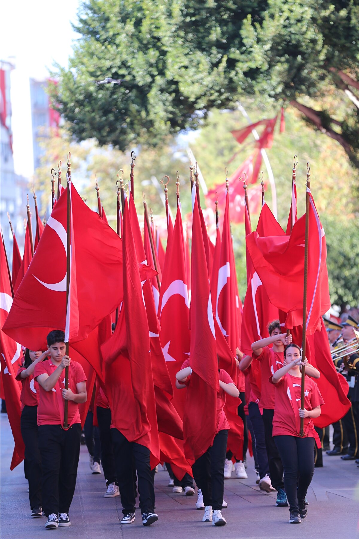 İzmir'de 29 Ekim Cumhuriyet Bayramı törenle kutlandı. Aileler çocuklarıyla birlikte Cumhuriyet Meydanı'nda törene katıldı.