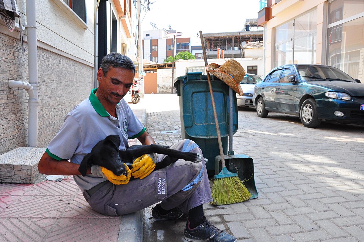 Saruhanlı ilçesi Saruhanlı Mahallesi'nde yalnız yaşayan Mustafa Özdemir, bir ay önce ilçe belediyesinde temizlik işçisi olarak işe başladı. Özdemir, ilk iş gününde yanına gelen köpeğin karnını doyurdu.