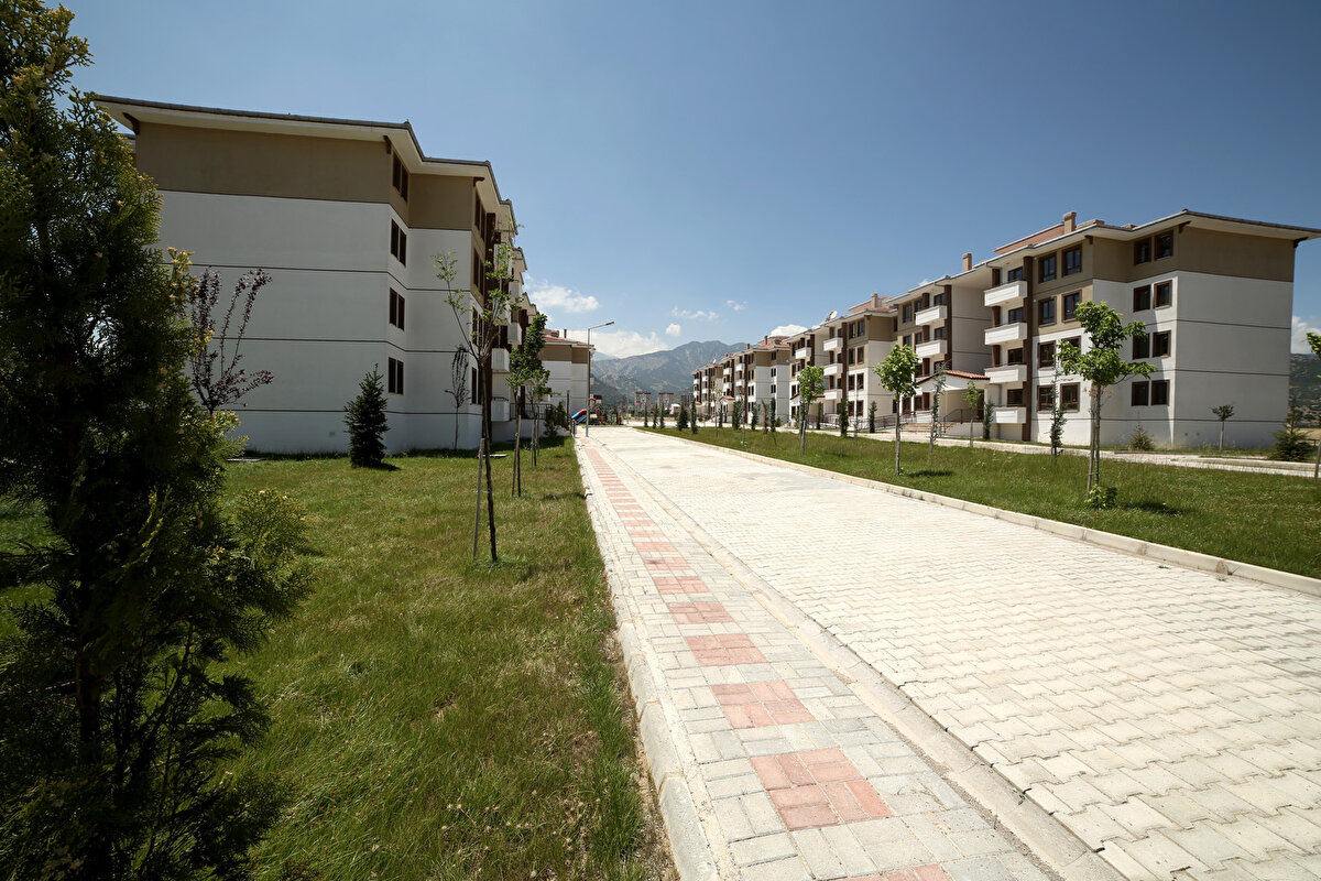 İlçe merkezinde yürütülen ihya çalışmaları kapsamında geçtiğimiz yıl Mayıs ayında TOKİ tarafından yapılacak olan 3 bin 920 afet konutunun temelleri atılmaya başlanmıştı. Ekiplerin gece ve gündüz mesai yaparak 7 gün 24 saat usulüyle çalıştıkları konutlar hak sahiplerine temin edilmeye başlandı.