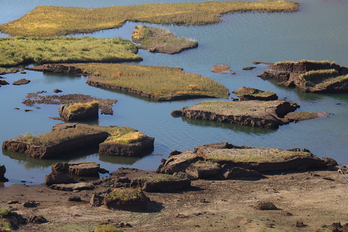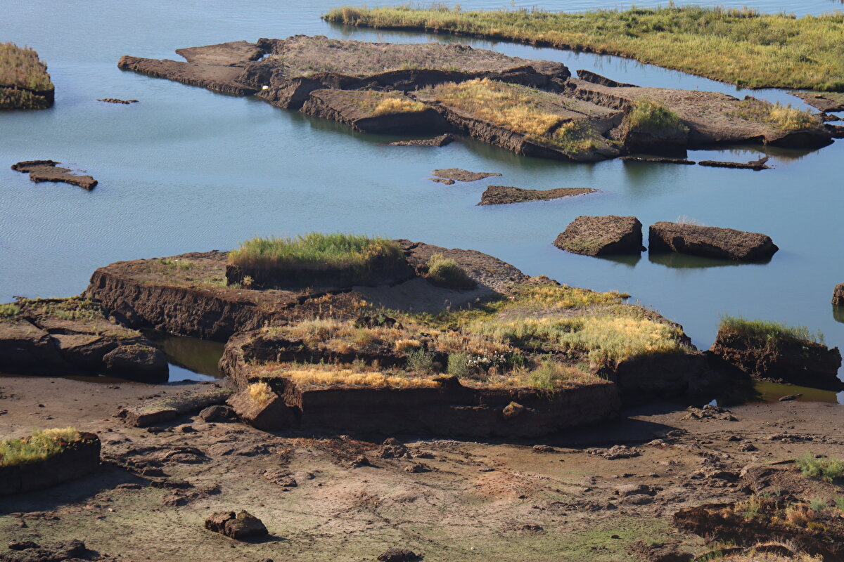 Adıyaman'ın Çelikhan ilçesindeki Çat Barajı'nda bulunan "yüzen adalar"ın büyük çoğunluğu, su seviyesinin azalması nedeniyle karaya oturdu.