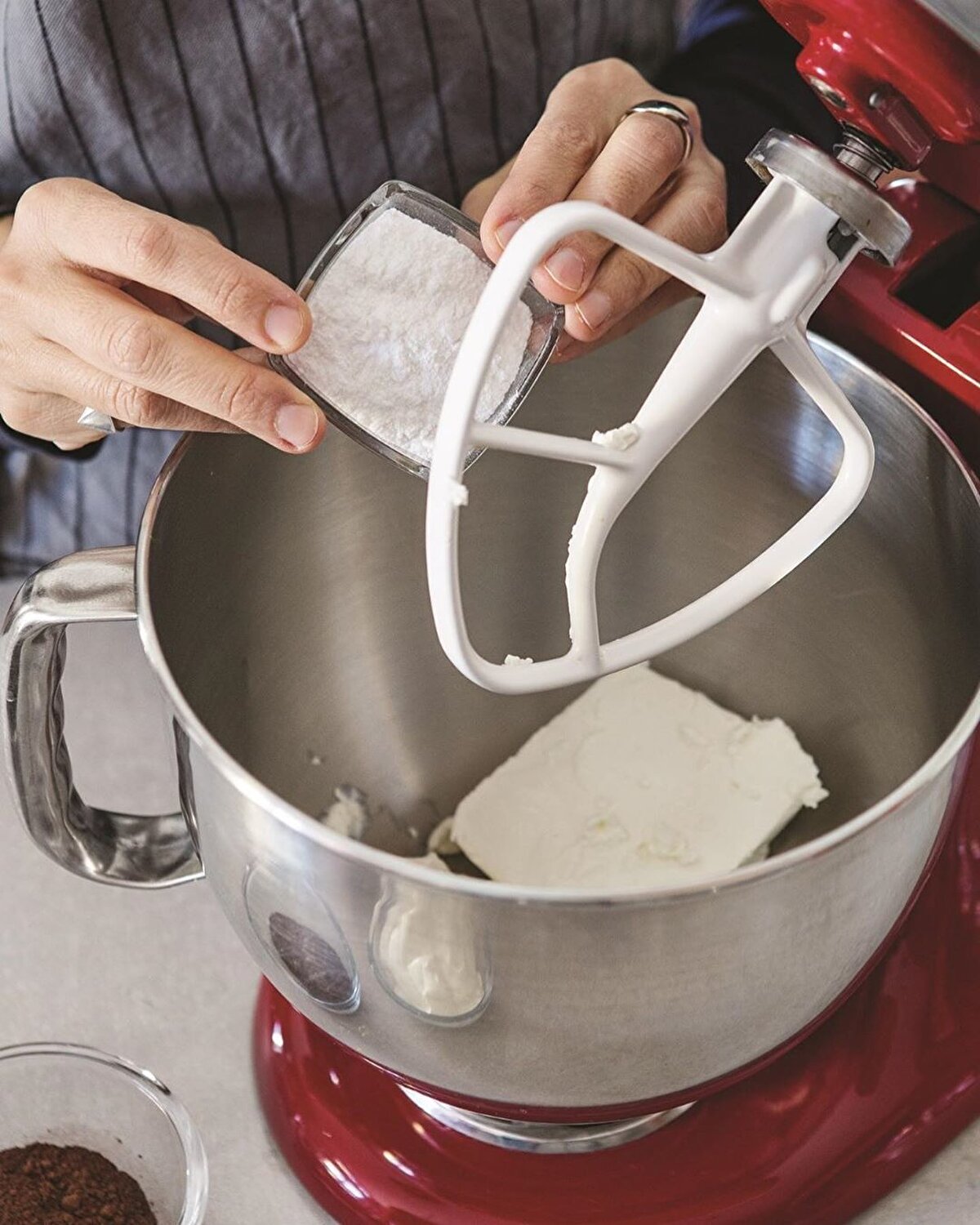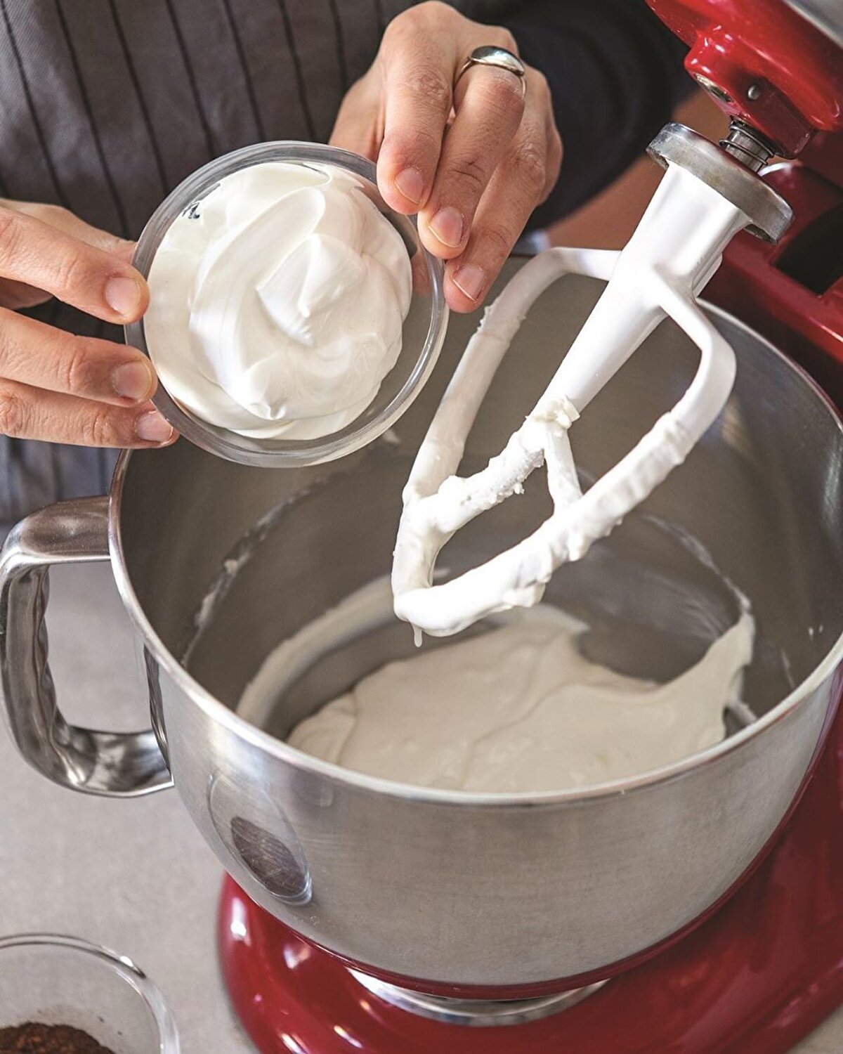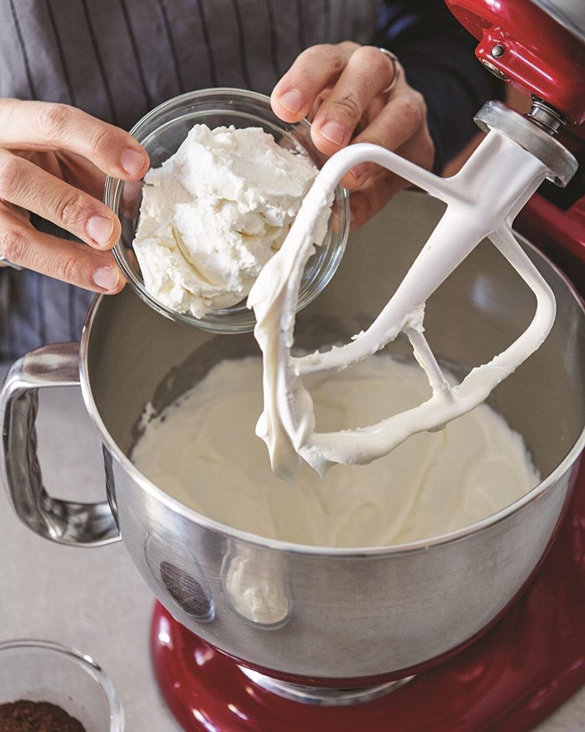 Yapılışı: Krem peyniri mikserin haznesine alın. Labneyi de ekleyin. Pudra sekerini de ekleyin ve krem kıvamına gelene kadar çırpın. Yoğurdu ekleyin ve çırpmaya devam edin. Çikolatayı benmaride eritin. Servis kuplarının zeminine bisküvilerden kırın ve paylastırın. Yoğurtlu harcın yarısını bisküvilerin üzerine paylaştırın. Erimiş çikolatayı kalan labneli karışıma yedirin. Beyaz kısmın üzerine paylaştırın. Üzerlerine ekstradan toz kakao serpin ve bisküvi kırıkları paylaştırın. Buzdolabında soğuttuktan sonra servis edin.