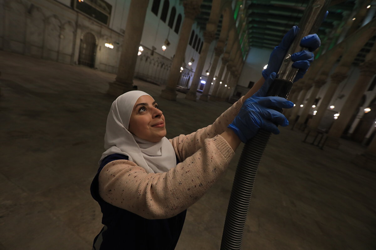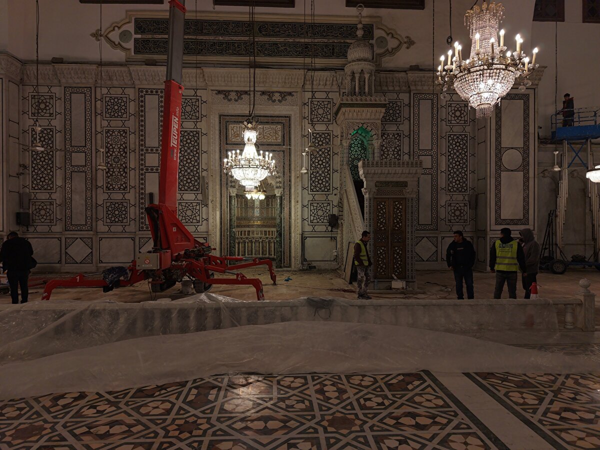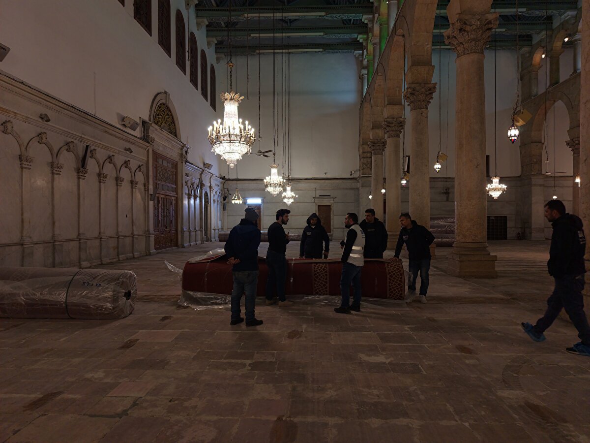 Suriye'nin başkenti Şam'da bulunan tarihi Emevî Camii'nde, iç mekânda bakım ve onarım çalışmaları başladı.