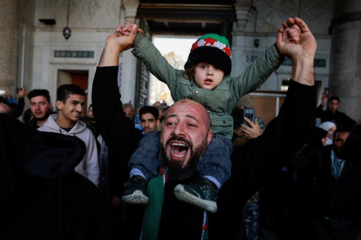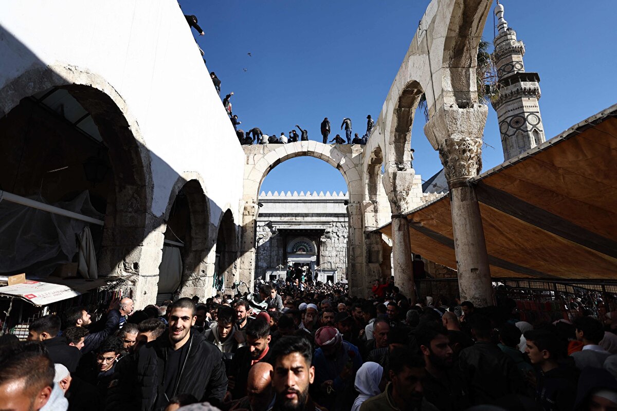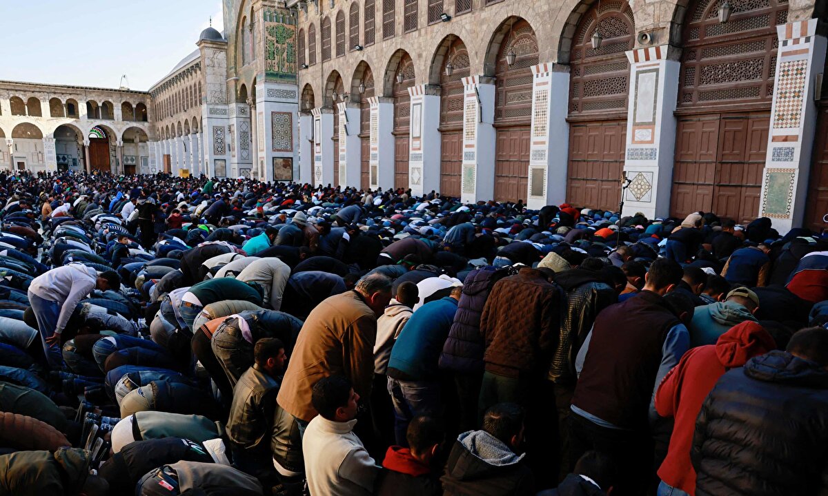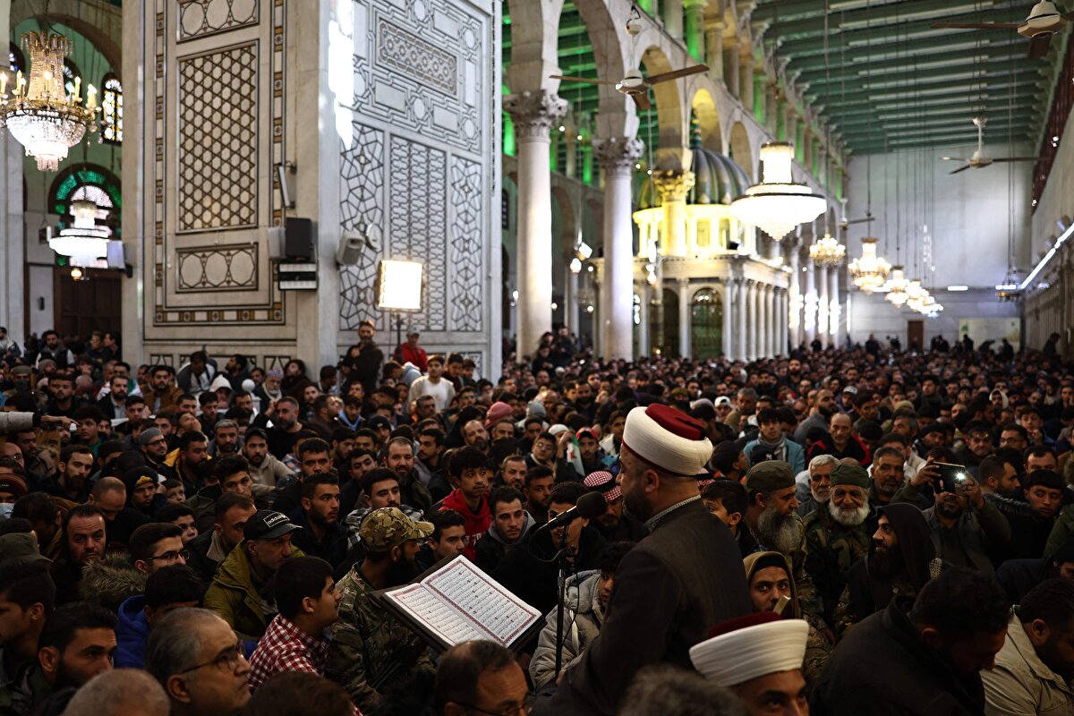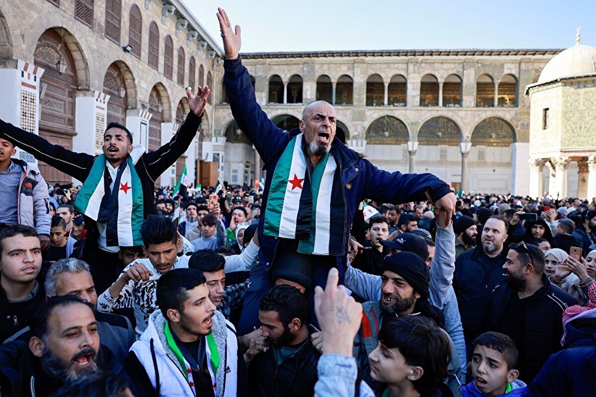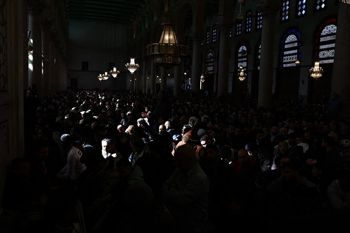 Suriye'nin başkenti Şam'da halk, Esed rejiminin devrilmesinin ardından ilk cuma namazını kılmak üzere tarihî öneme sahip Emevî Camii'ne akın etti.
