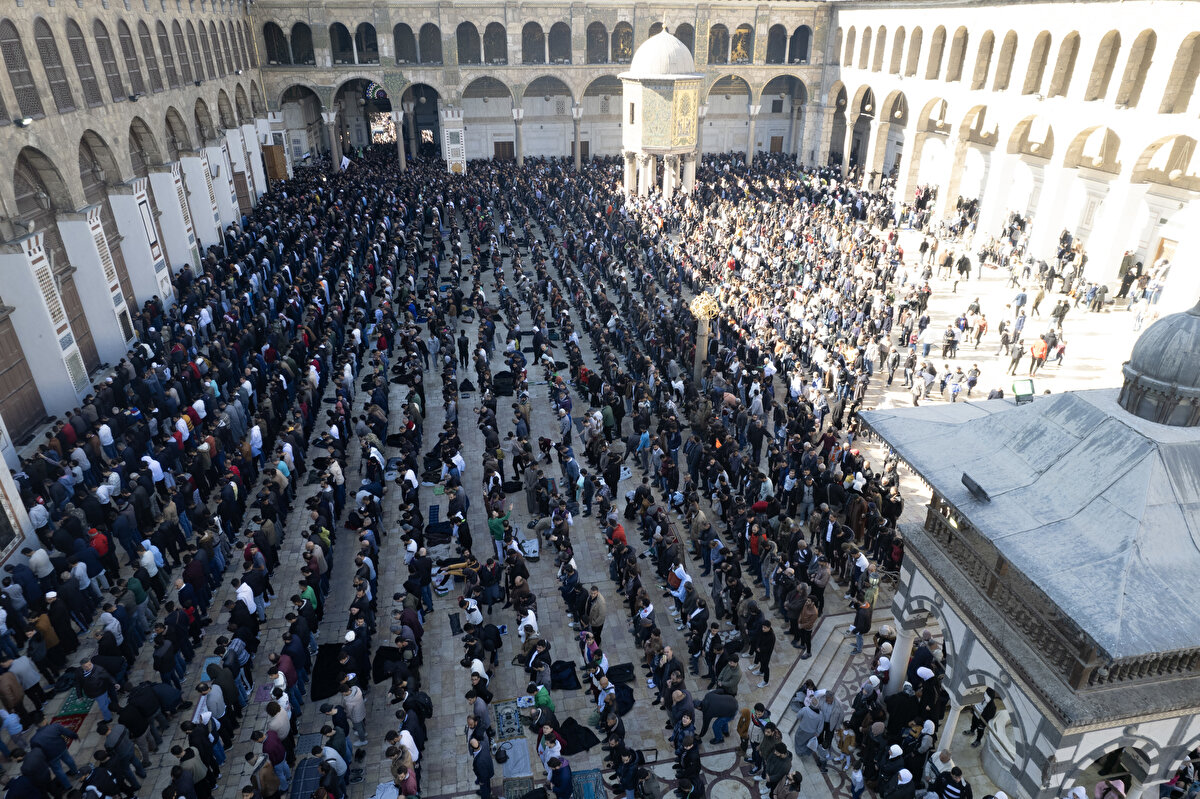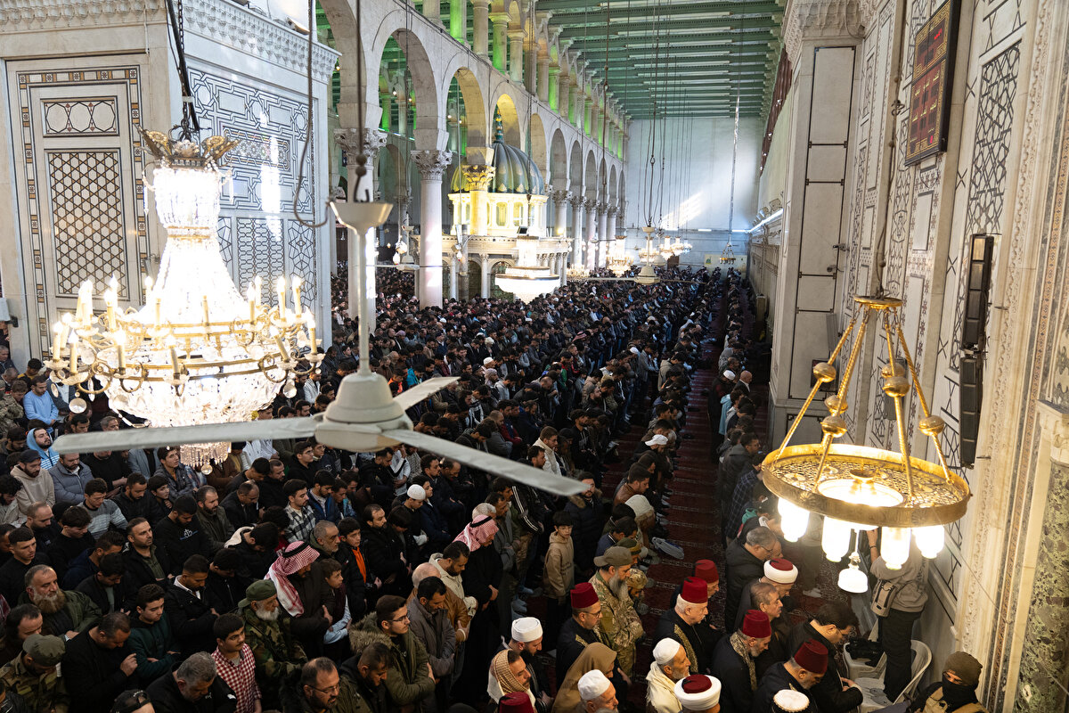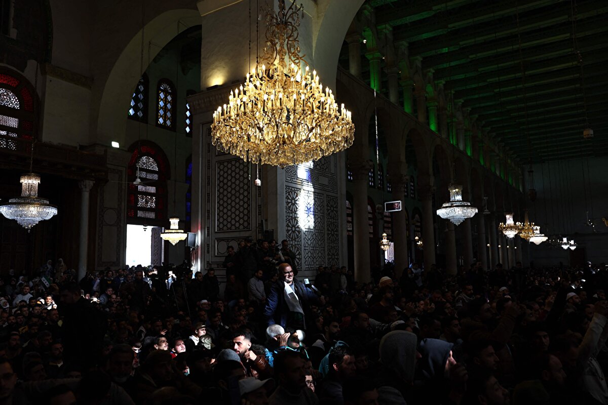 7. yüzyılda inşa edilen ve Suriye'nin tarihine bire bir tanıklık eden bu abidevî camide, yarım asırdan fazla süren bir rejim ve 13 yıllık acımasız bir iç savaştan bu yana ilk cuma namazı kılındı. Ülkenin dört bir yanından Suriyelilerin toplandığı camide heyecan hâkimdi. Cami ve çevresini dolduran halk, "Suriye devrimi bayraklarıyla", ülkenin özgürlüğü için ve "yeni Suriye" için temenniler içeren sloganlar attı. Camide toplanan kalabalık tekbirler getirdikten sonra namaza durdu. Hutbeyi, geçici yönetimin Başbakanı Muhammed el-Beşir okudu.