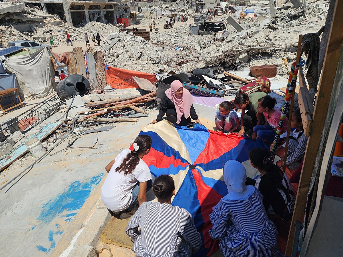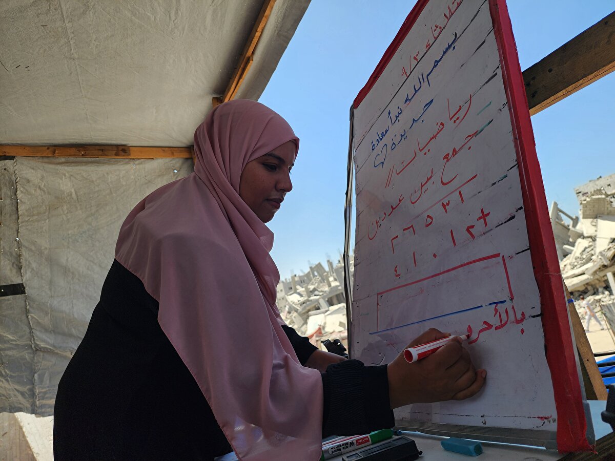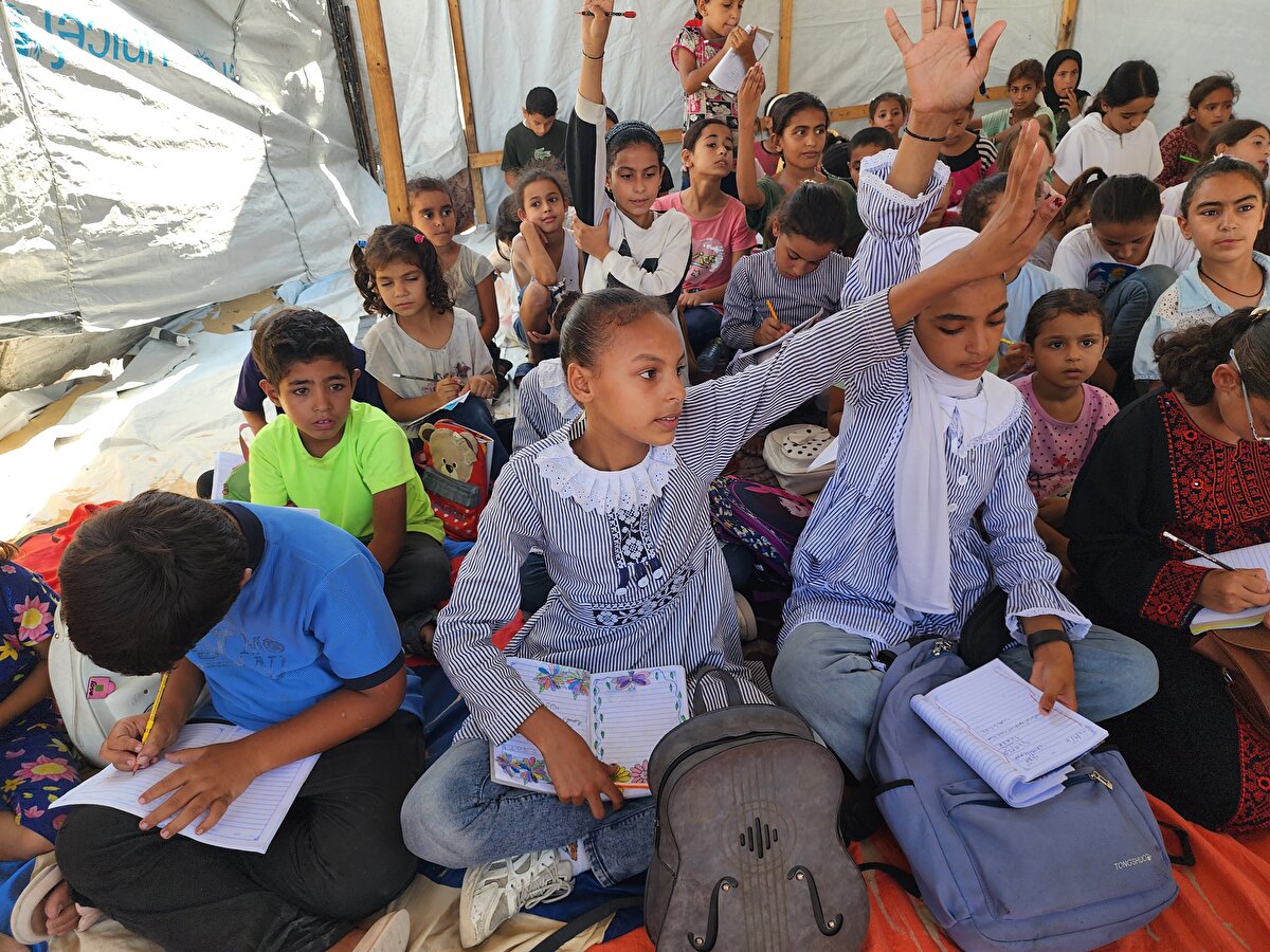 Ölü sayısının 40 bini geçtiği, bulaşıcı hastalıkların yayıldığı, evlerin-hastanelerin-yolların bir bir bombalandığı, en temel yiyecek-içeceklerden dahi ulaşılamaz hale geldiği Gazze'de, İsrail ordusunun Han Yunus kentine düzenlediği saldırılarda evi yıkılan öğretmen Alaa Abu Mustafa, yıkılan evinin enkazı üzerine kurduğu çadır okulda öğrencilere ders vermeye devam ediyor. Öğretmen Alaa, hâlihazırdaki tüm kısıtlı ve zor şartlara rağmen ilkokul öğrencilerinin eğitimden mahrum kalmaması için çaba sarf ediyor.