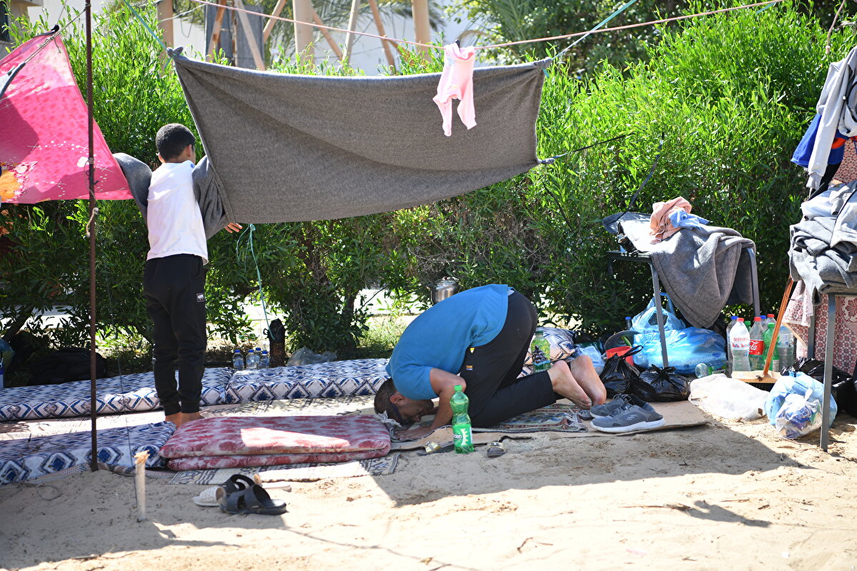 İsrail'in abluka ve bombardıman altında tuttuğu Gazze Şeridi'nde cuma namazı kılındı. Kimi Gazzeliler Han Yunus Mülteci Kampı'nda bulunan Birleşmiş Milletler Filistinli Mültecilere Yardım Ajansı'na bağlı bir okulun bahçesinde namazlarını kılarken, kimisi de İsrail saldırılarıyla harabeye dönmüş şehrin sokaklarında namazlarını eda etti.