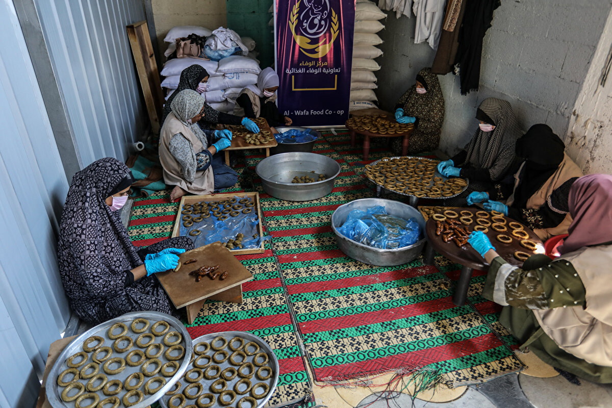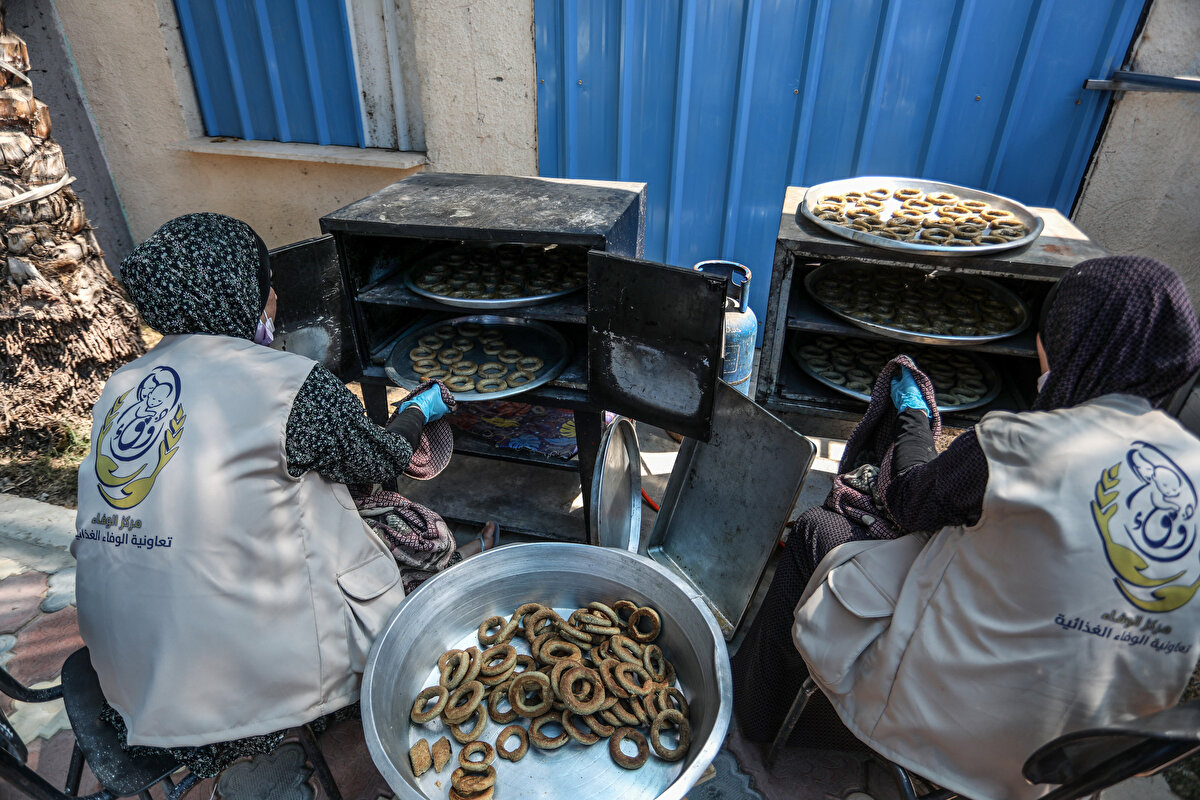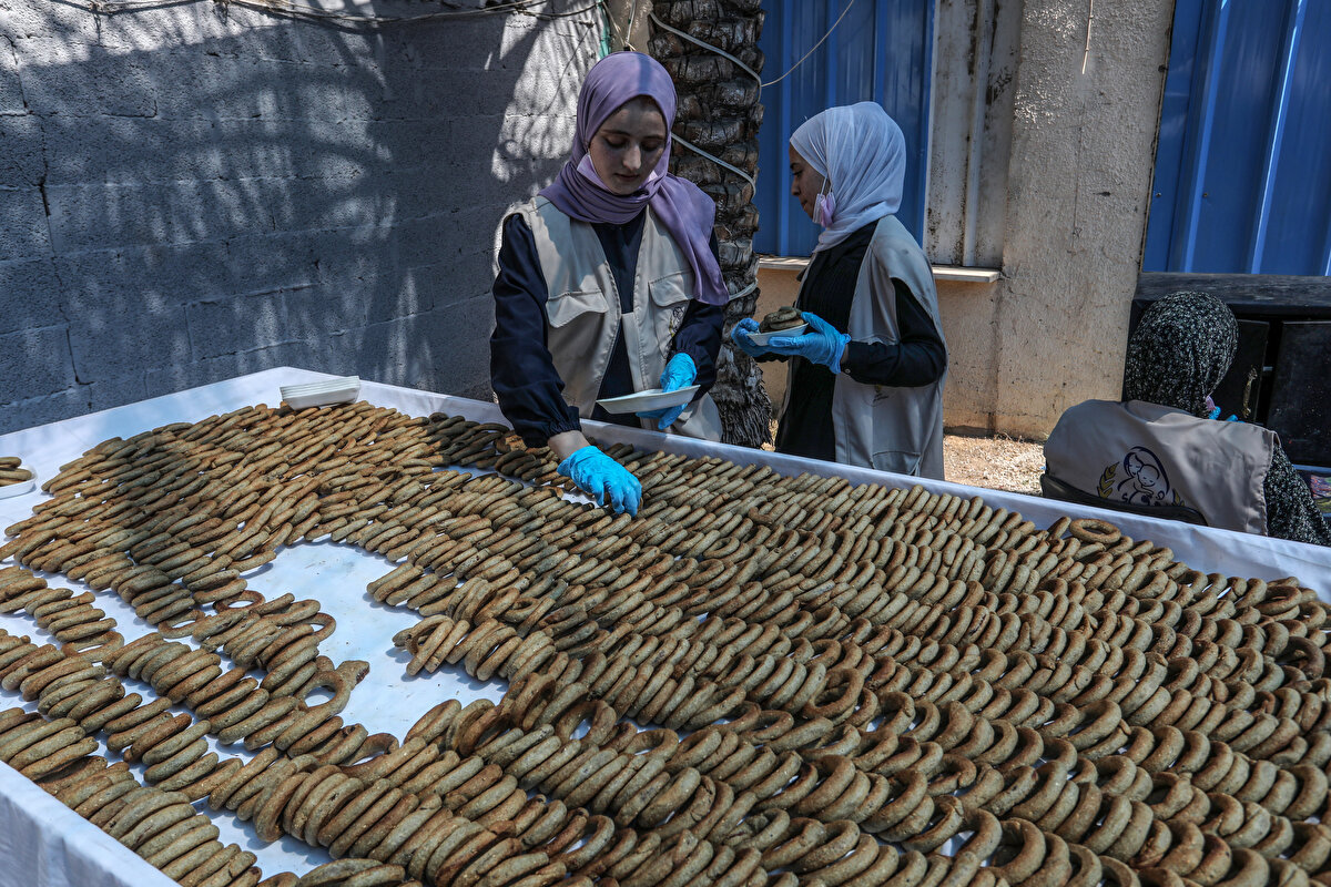 Yine Refah kentinde gönüllü bir kadın girişimi, çadırlarda yaşayan ihtiyaç sahibi ailelere dağıtılmak üzere geleneksel bayram kurabiyesi yaptı.