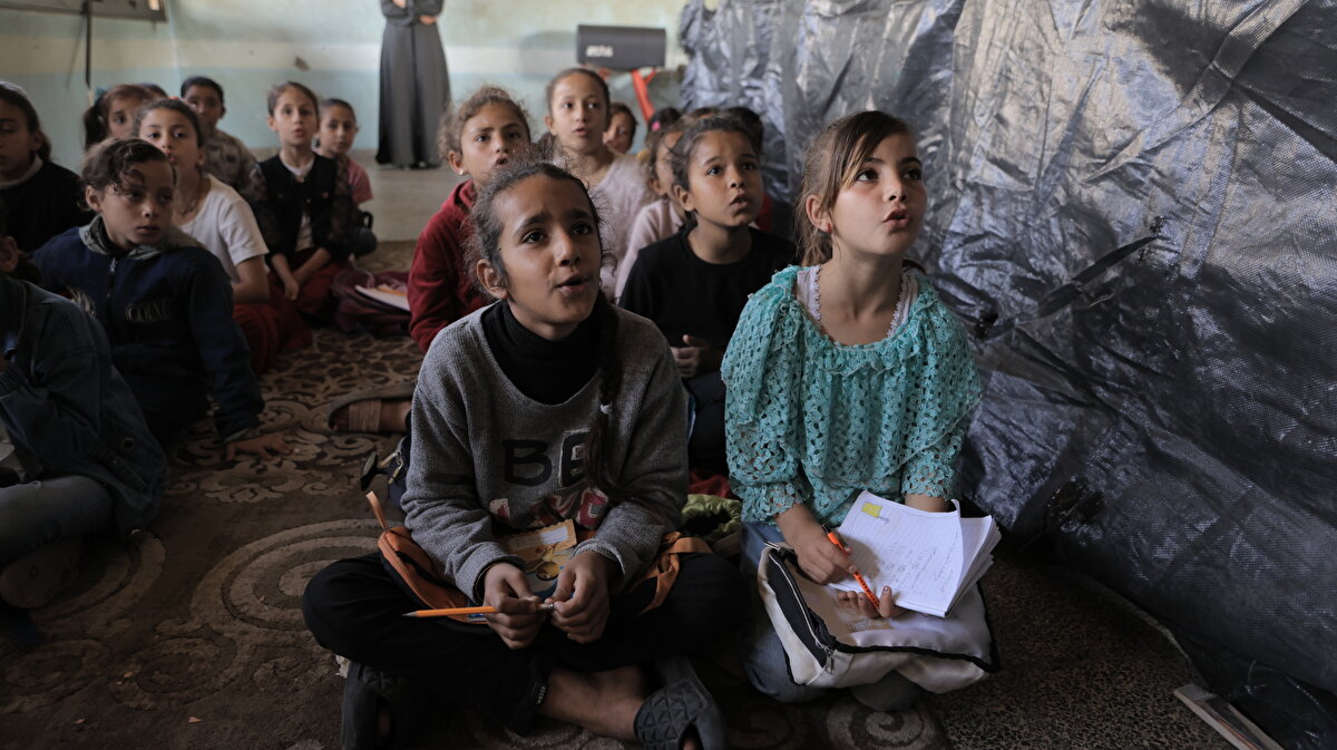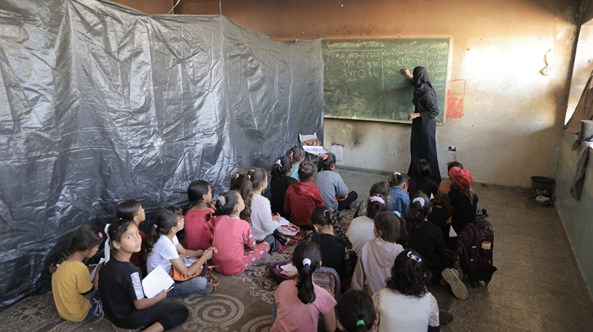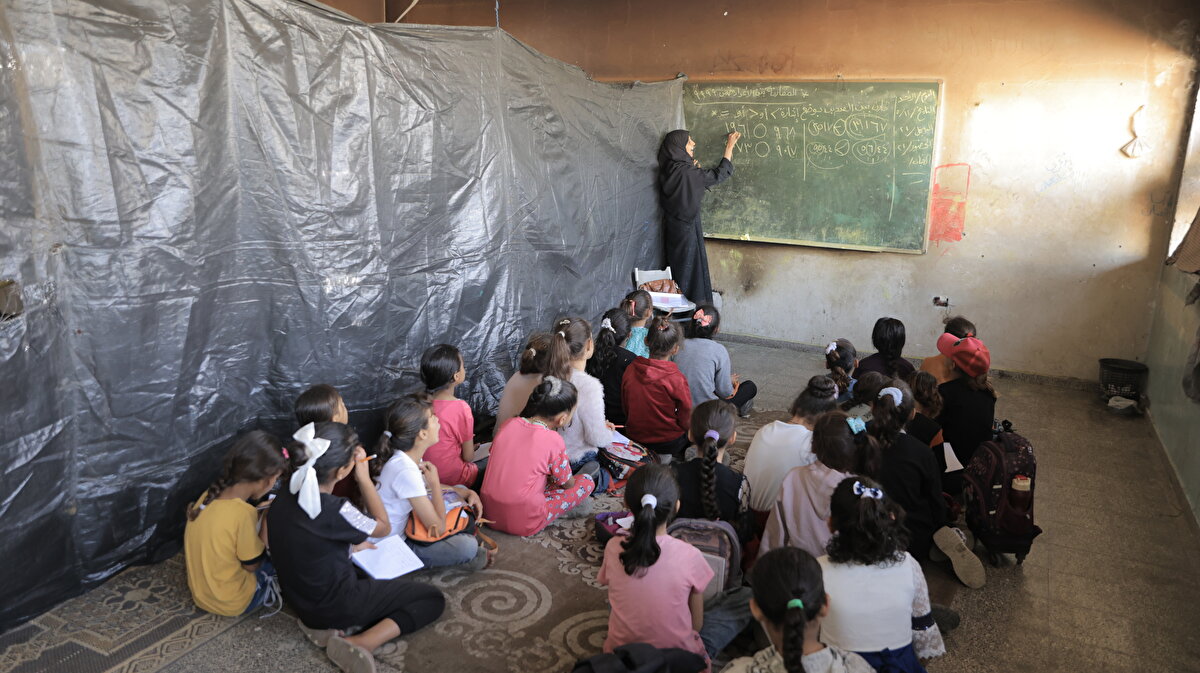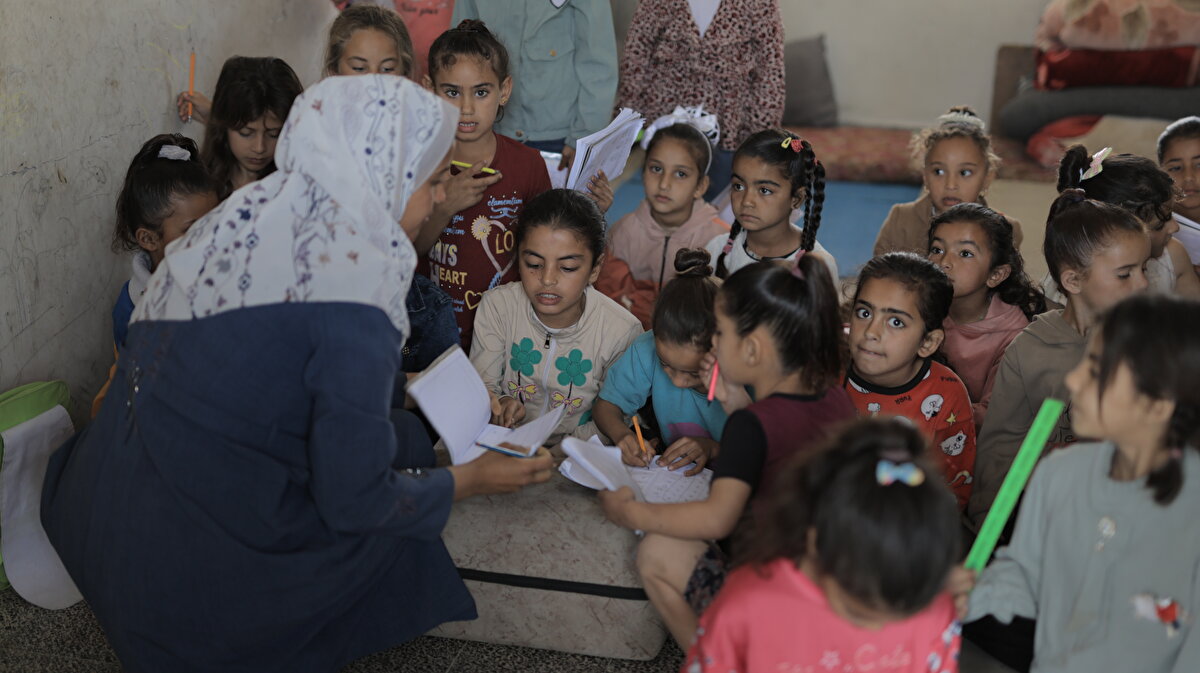 İsrail'in abluka altındaki Gazze Şeridi'ne yönelik acımasız ve yıkıcı saldırıları aralıksız devam ederken bir grup gönüllü öğretmen, yerinden edilen ve sığındıkları Gazze'nin kuzeyindeki Beyt Lahya Lisesi'nde 400 çocuğa yakın eğitim imkânı kısıtlı şartlar dahilinde sunmaya çalışıyor.