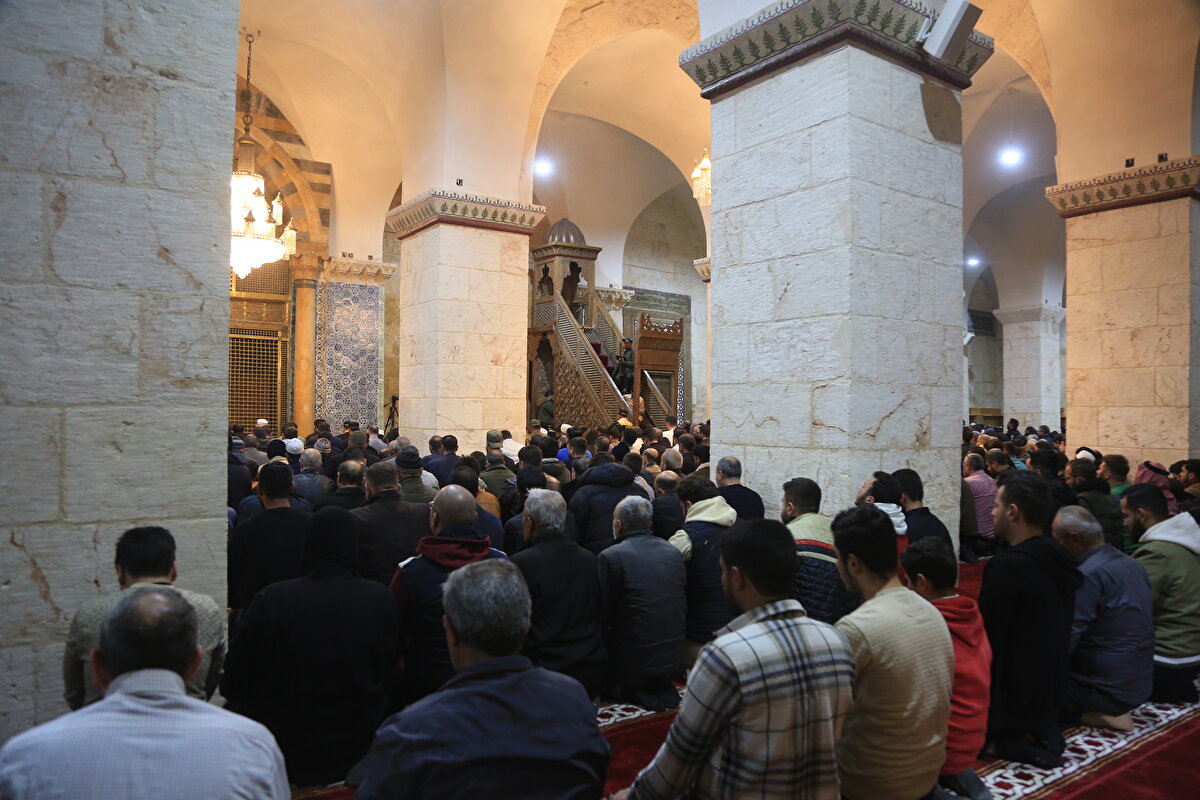 Suriye'de eli kanlı Baas rejiminin 61 yılın ardından çökmesiyle restorasyon çalışmalarına başlatılan tarihî camide, 12 yıl aradan sonra ilk teravih namazı kılındı.
