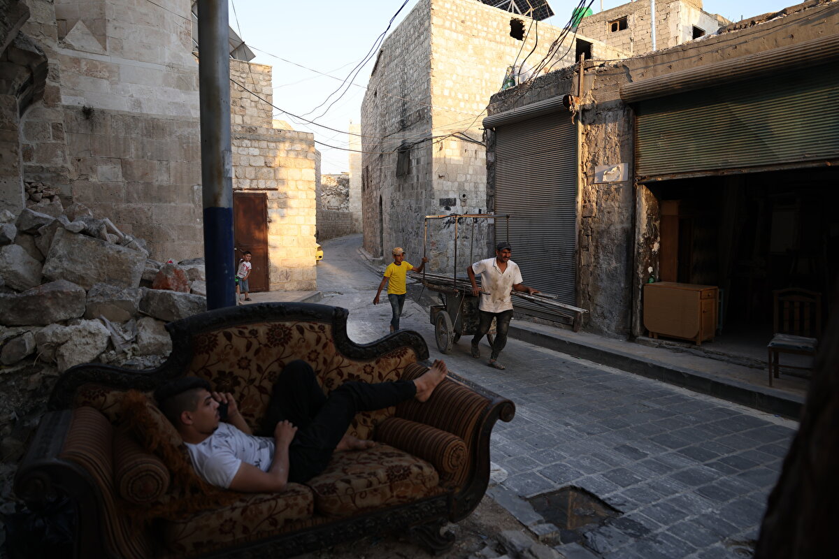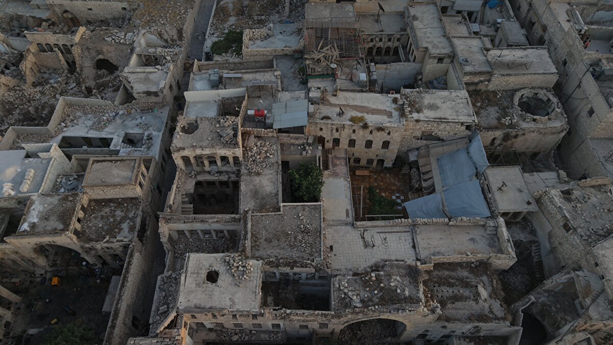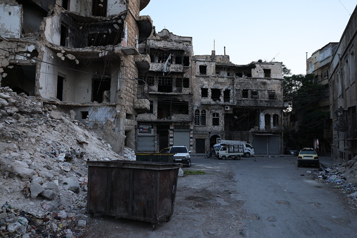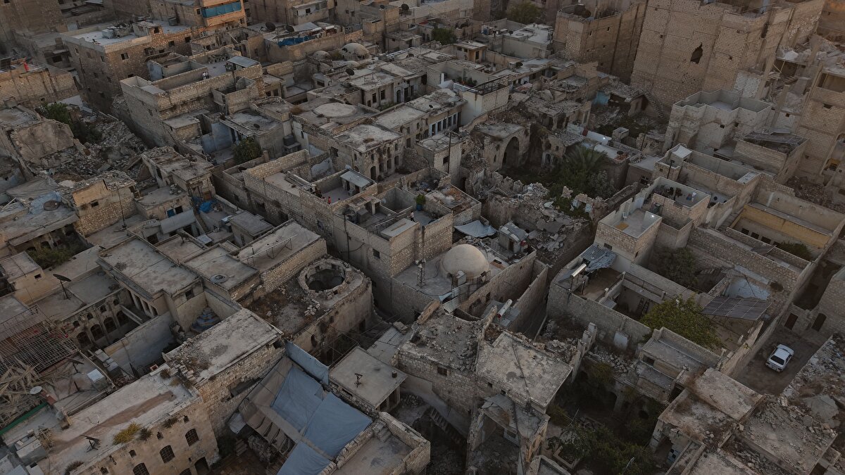 Suriye'nin Halep kentinin eski mahalleleri savaşın izlerini gözler önüne seriyor. Yıkılmış binalar ve harap olmuş sokaklar, yıllar süren çatışmaların bıraktığı ağır tahribatı ortaya koyuyor. Ancak bazı bölgelerde küçük dükkân ve pazarların yeniden açılmasıyla kentte hayat yavaş yavaş canlanıyor; halk günlük yaşamını yeniden kurmaya çalışıyor ve normale dönüş süreci devam ediyor.