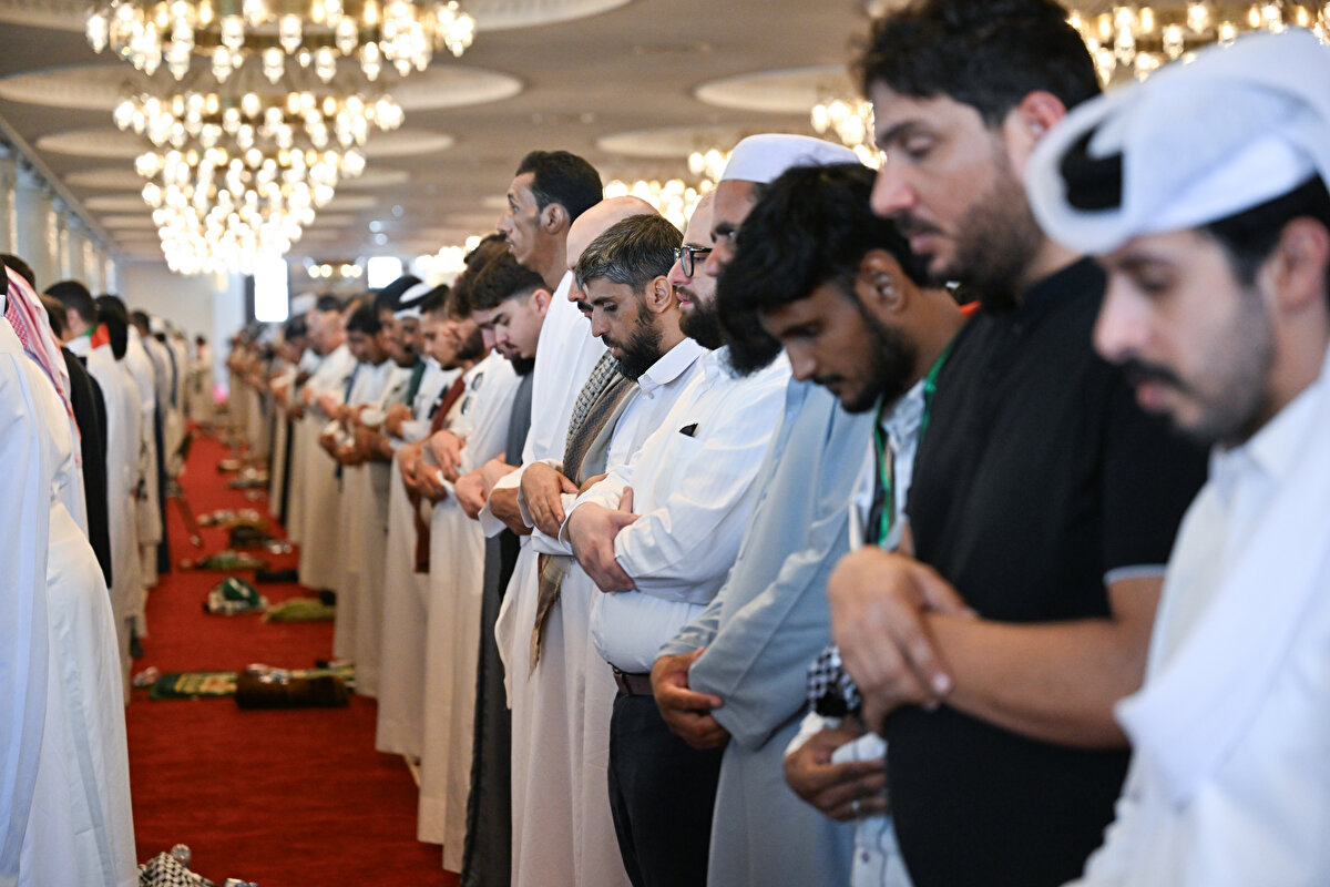 Cenaze töreni nedeniyle Doha’da güvenlik arttırılırken, binlerce kişi caminin avlusunda ve dışında da cenaze töreni için saf tuttu.