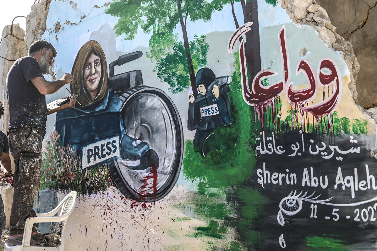 İdlibli grafiti sanatçısı, İsrail’in öldürdüğü Filistinli gazeteci Ebu Akile'yi resmetti