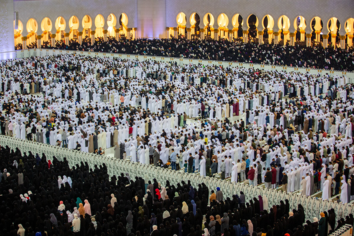 Birleşik Arap Emirlikleri'ndeki (BAE) Müslümanlar, Kadir Gecesi'ni idrak etmek için başkent Abu Dabi'deki Şeyh Zayid Camii'ne gelerek, namaz kılıp dua etti.