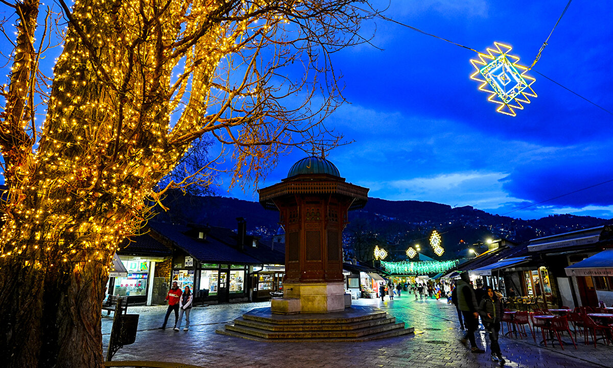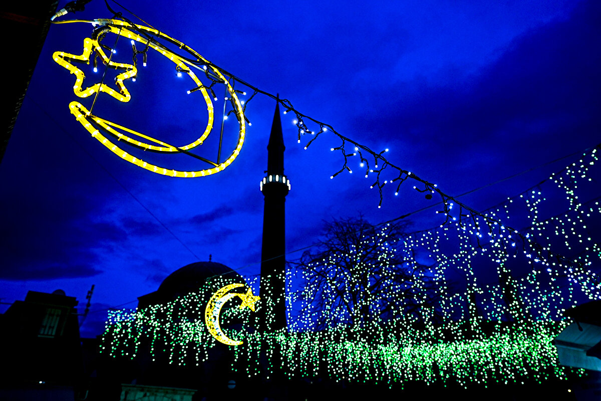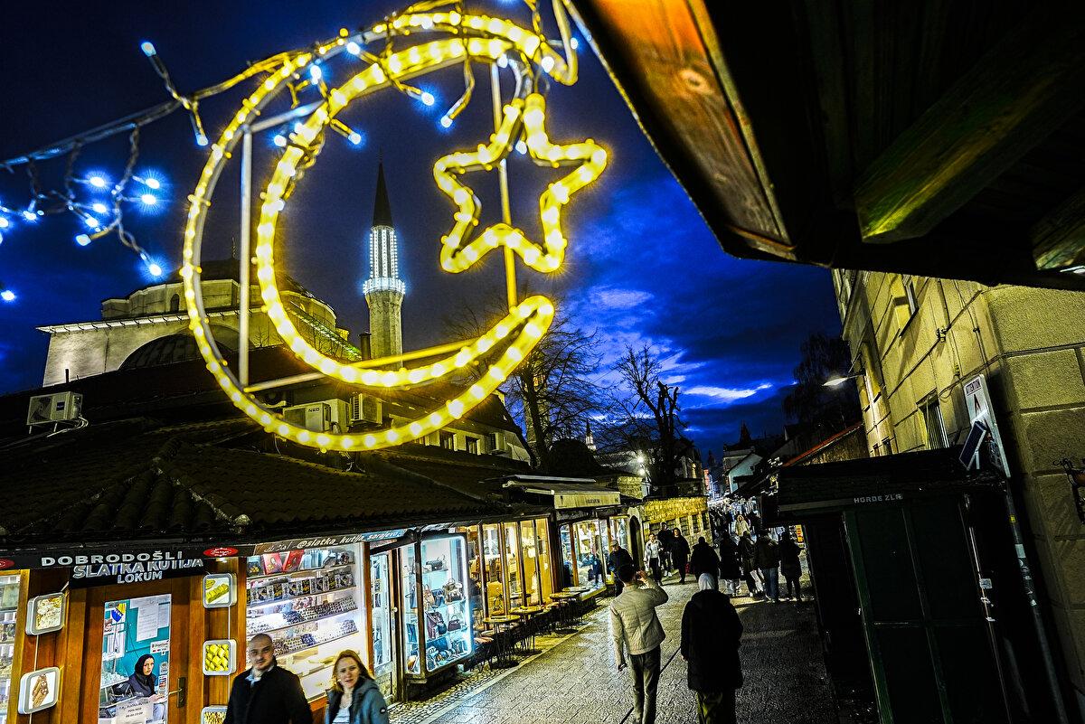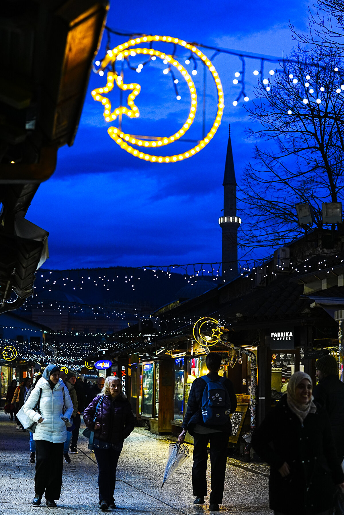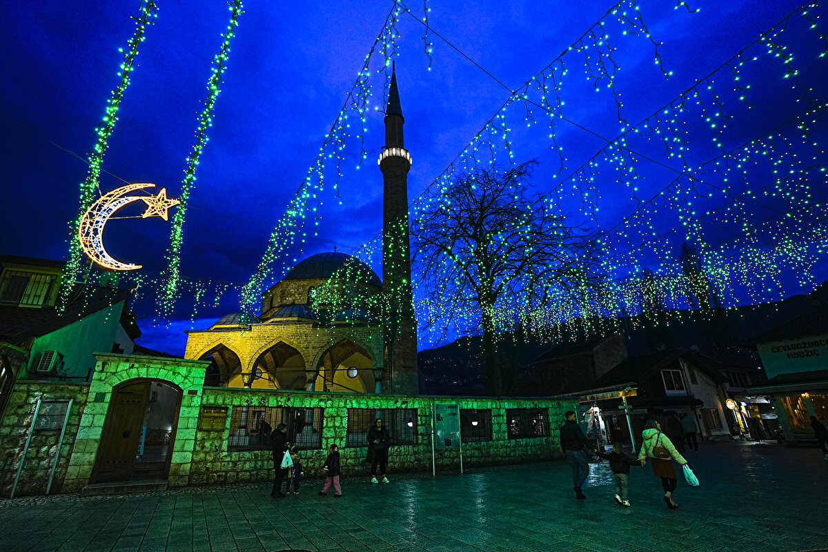 Bosna Hersek'in başkenti Saraybosna'daki tarihî Başçarşı'nın Ramazan ayı nedeniyle "ay ve yıldız" ışıklarıyla süslenmesi şehre görsel zenginlik kattı.