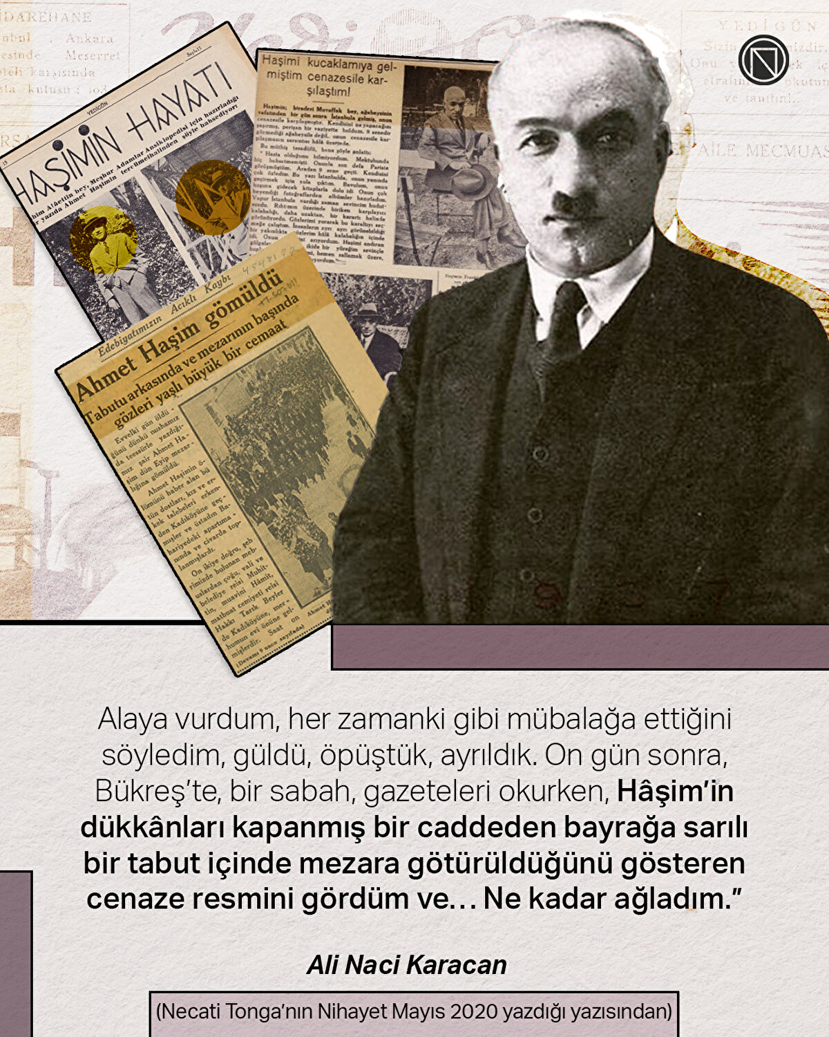 Ahmet Haşim vefatından önce arkadaşı Ali Naci Karacan'a ne söyledi?