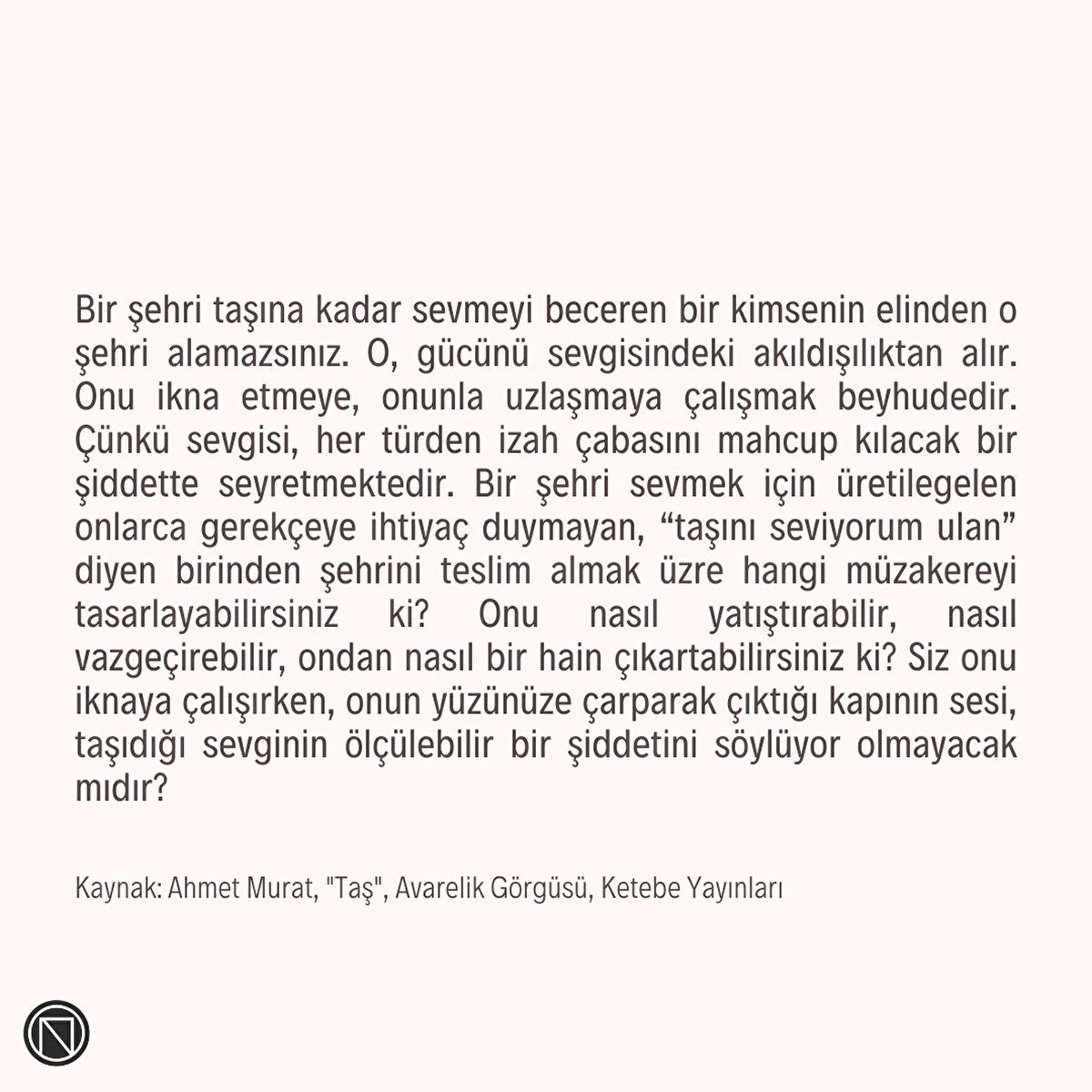 Bir şehri taşına kadar sevmeyi beceren bir kimsenin elinden o şehri alamazsınız!