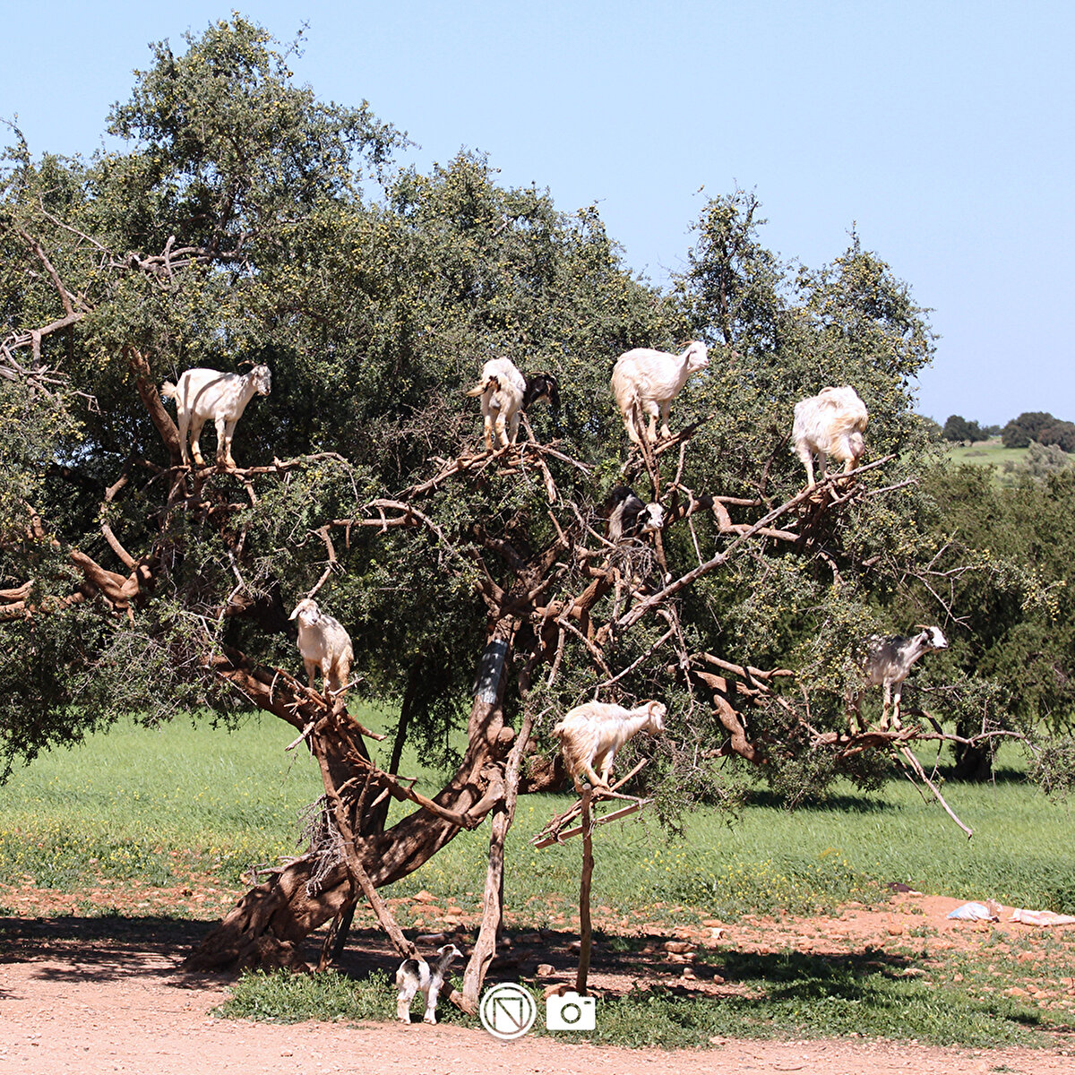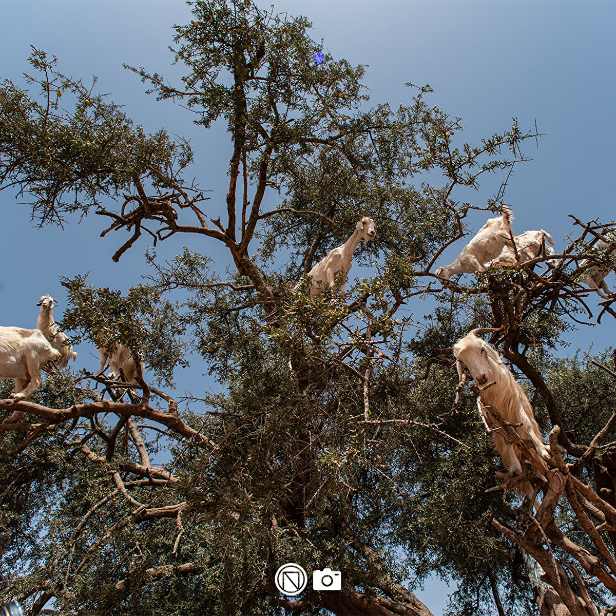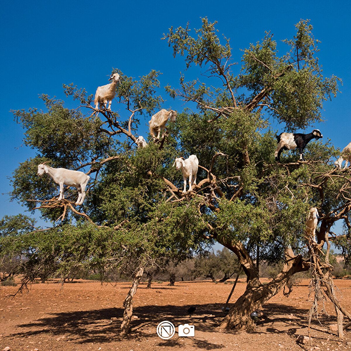 Fas kırsalında sıklıkla karşılaşılan bir görüntü bu. Keçiler, yapraklarını yiyebilmek için ağaçlara tırmanıyor