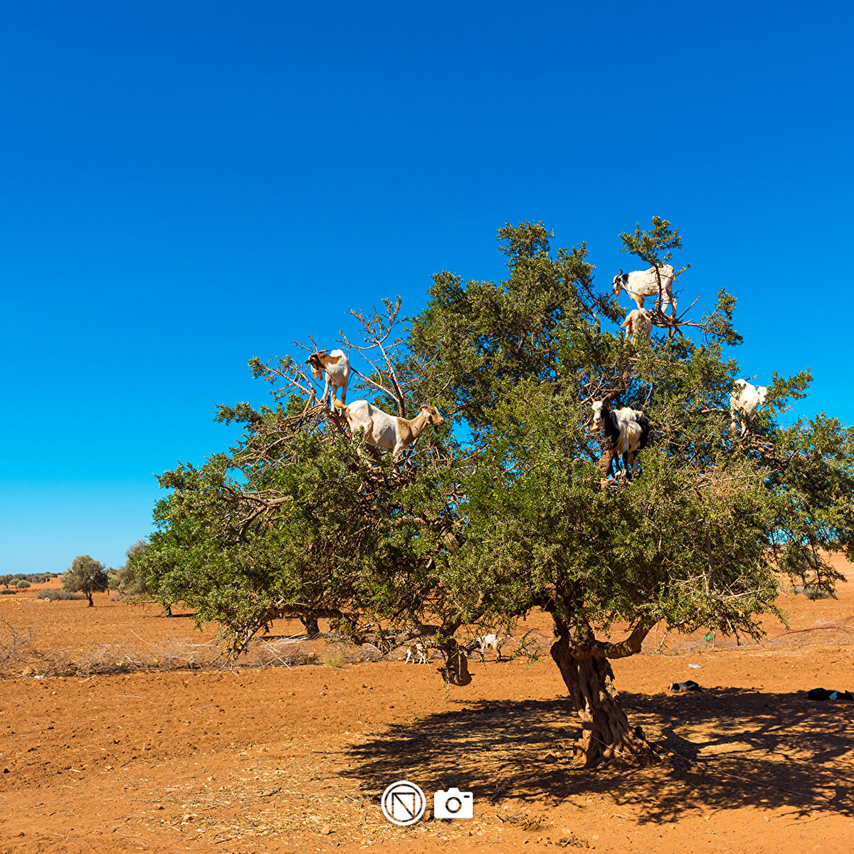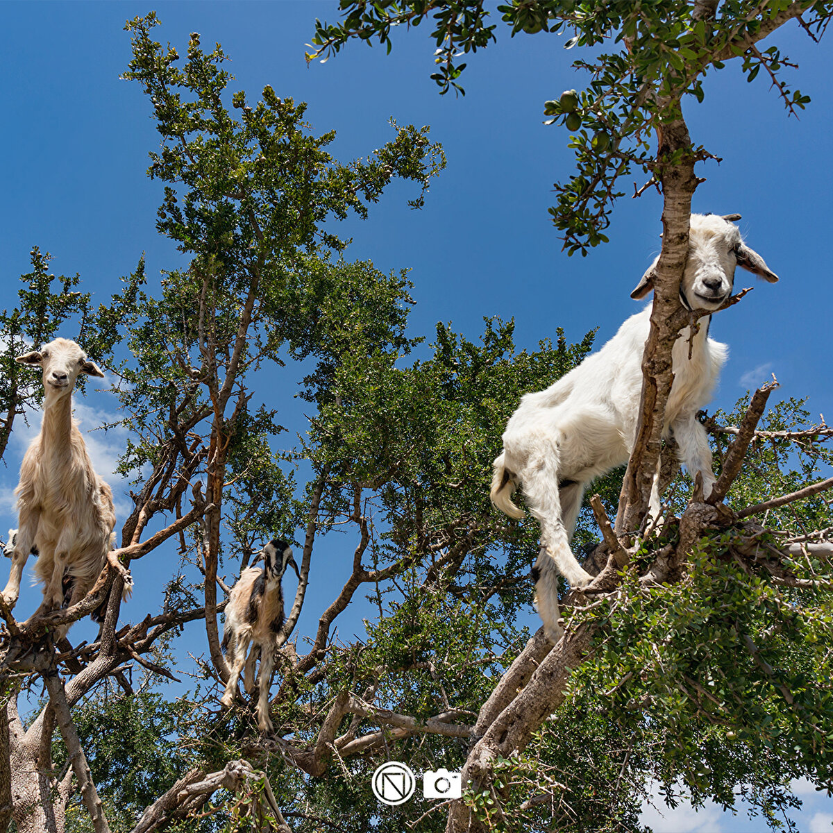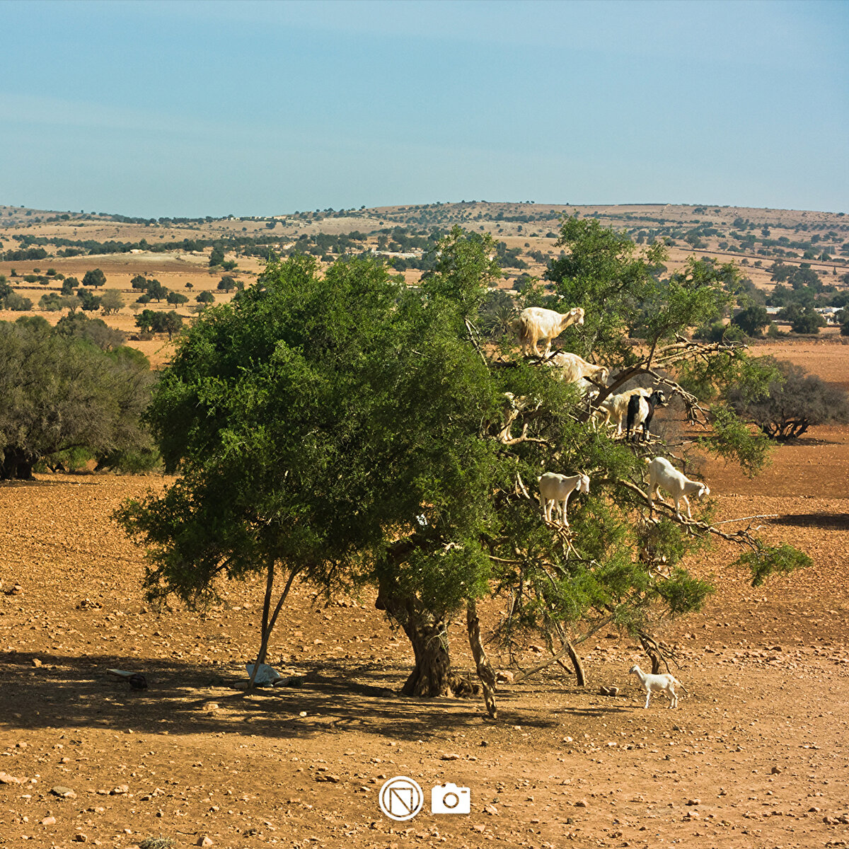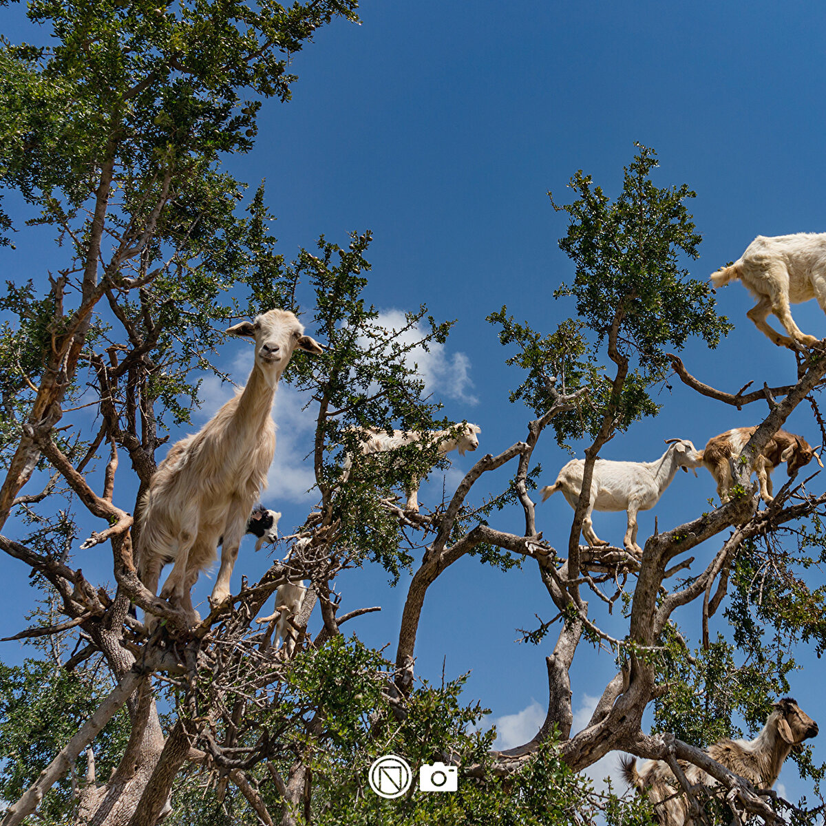 Fas kırsalında sıklıkla karşılaşılan bir görüntü bu. Keçiler, yapraklarını yiyebilmek için ağaçlara tırmanıyor