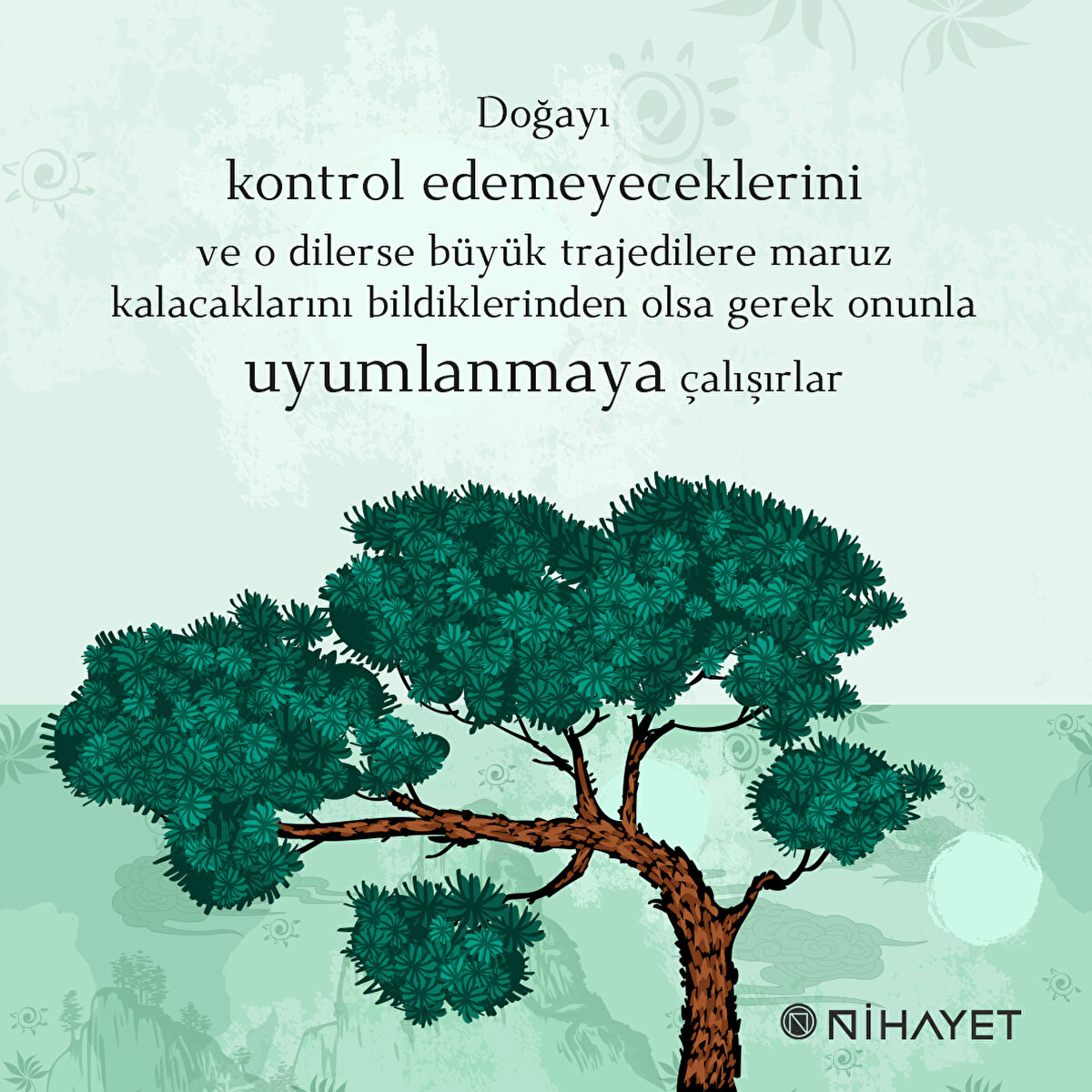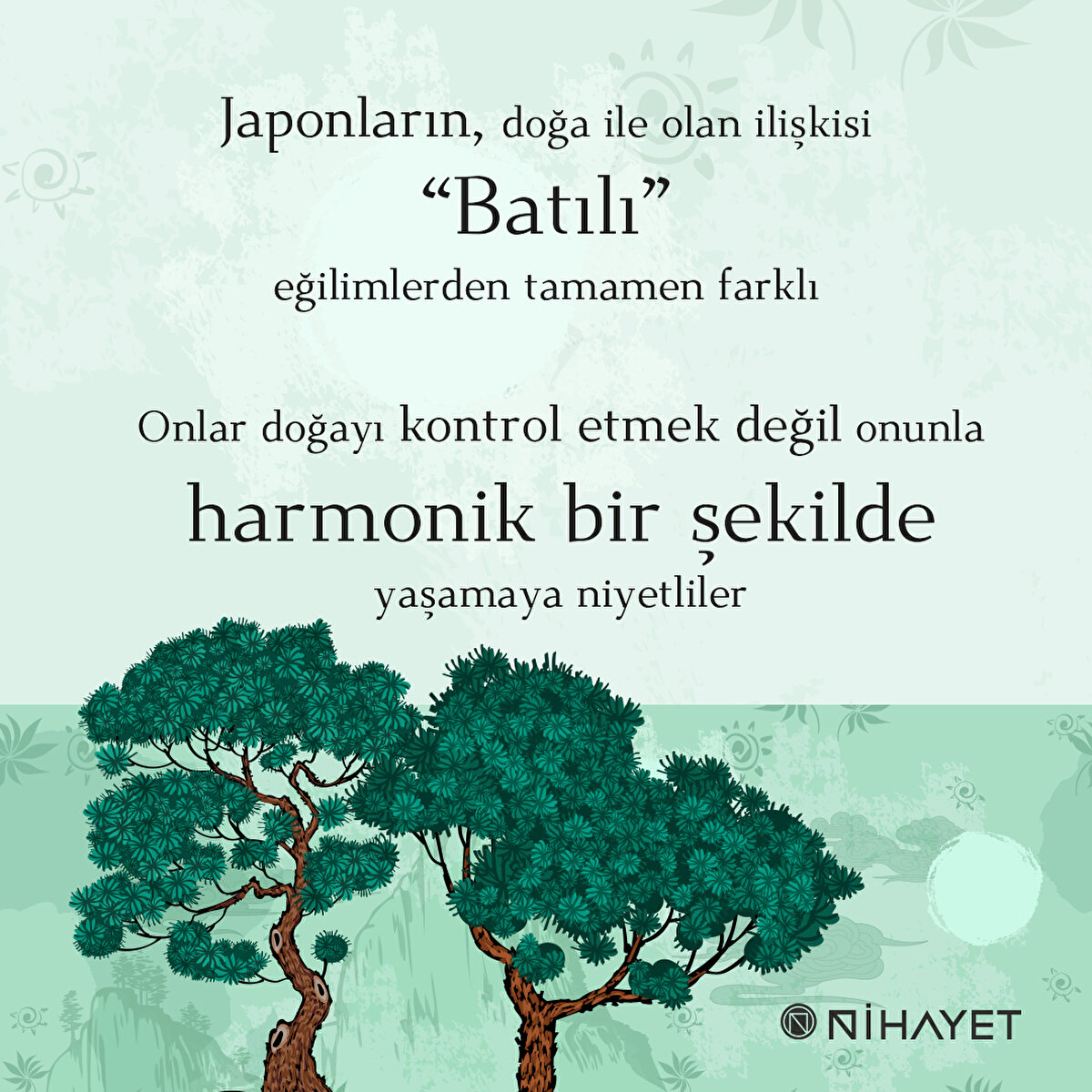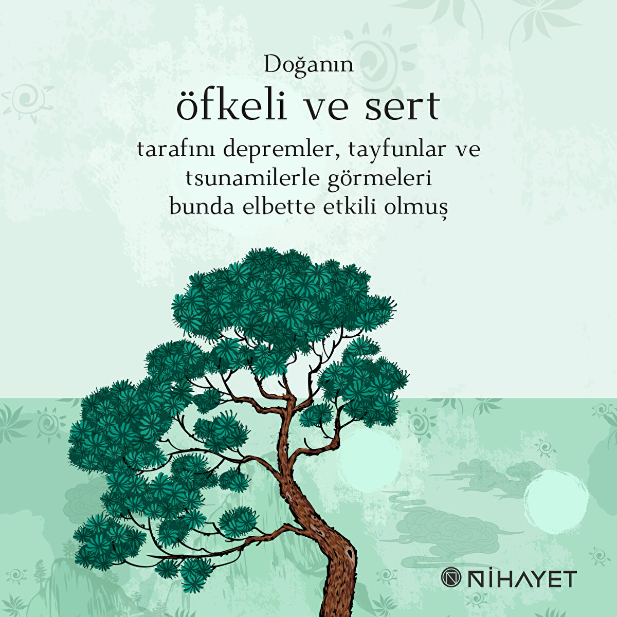 Japonların, doğa ile olan ilişkisi “Batılı" eğilimlerden tamamen farklıdır. Onlar doğayı kontrol etmek değil onunla harmonik bir şekilde yaşamaya niyetlidirler. Doğanın öfkeli ve sert tarafını depremler, tayfunlar ve tsunamilerle görmeleri bunda elbette etkili olmuştur. Doğayı kontrol edemeyeceklerini ve o dilerse büyük trajedilere maruz kalacaklarını bildiklerinden olsa gerek onunla uyumlanmaya çalışırlar. Doğa ile olan bu ambivalant ilişkiyi “depreme, onunla birlikte sallanarak dayanmak" deyişi en iyi şekilde özetler belki de.