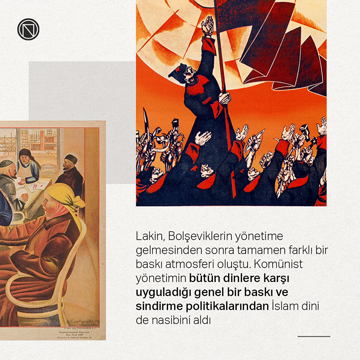 Bolşeviklerin yönetime gelmesinden sonra bir baskı atmosferi oluştu. Komünist yönetimin bütün dinlere karşı uyguladığı genel bir baskı ve sindirme politikalarından İslam dini de nasibini aldı