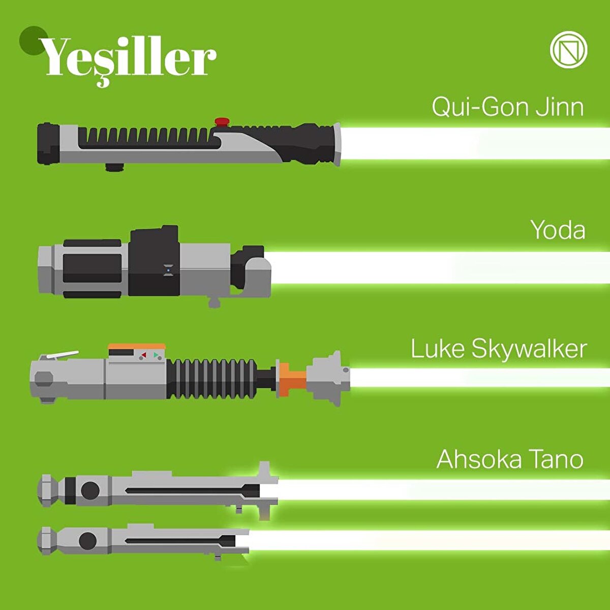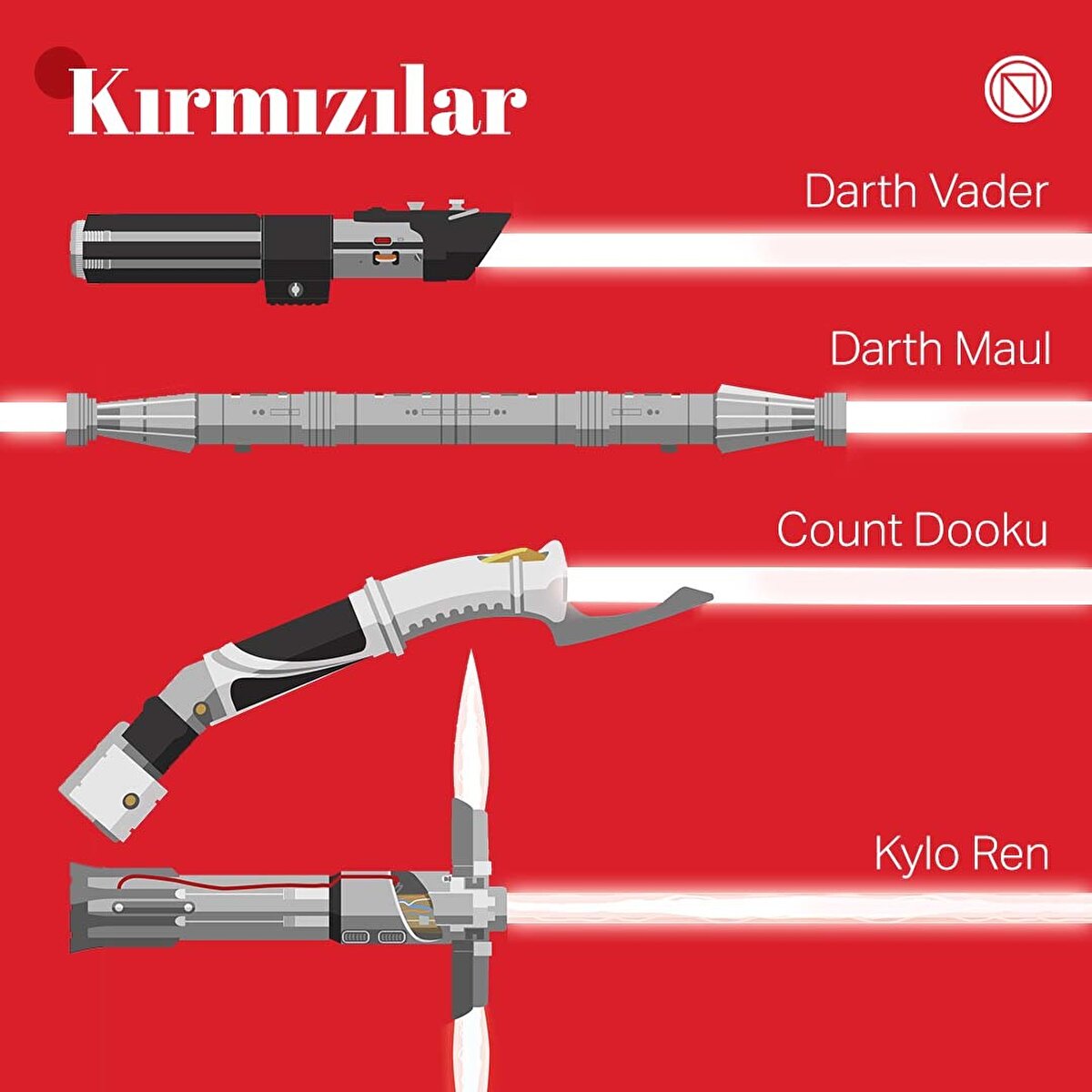 Star Wars serisinin en ikonik öğelerinden biri olan ışın kılıçlarını bakalım. Işın kılıcı genellikle Jedi, Sith ve diğer Güç'e hassas bireyler tarafından kullanılan bir silahtı. Işın kılıçları kyber kristali tarafından güçlendirilen, genellike metal bir kabzadan çıkan ve istendiğinde kapatılabilen bir plazma kılıçtan oluşuyordu.