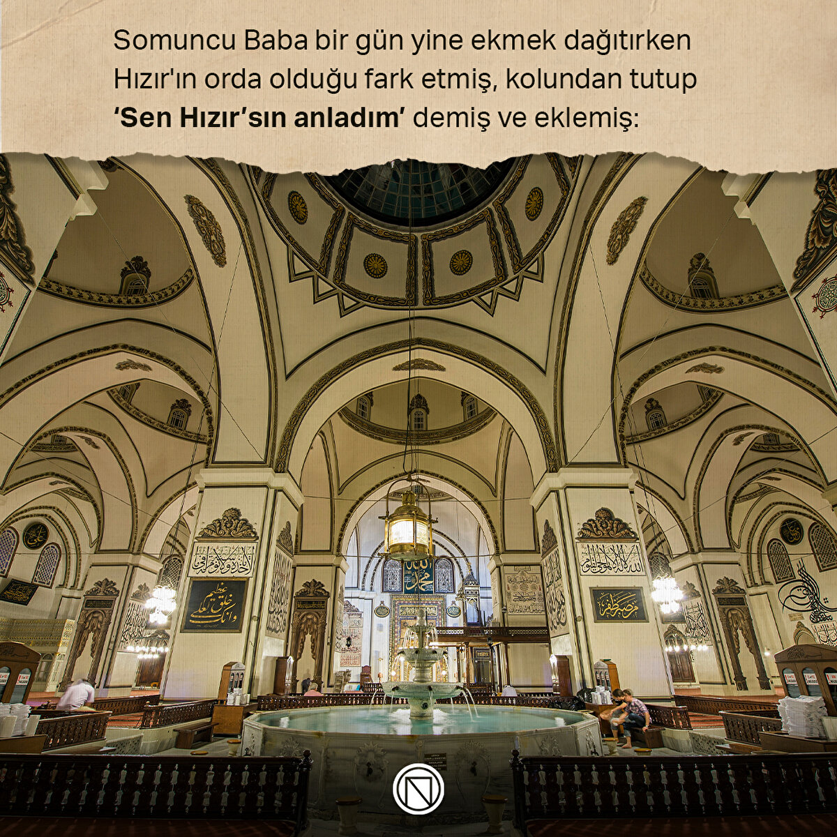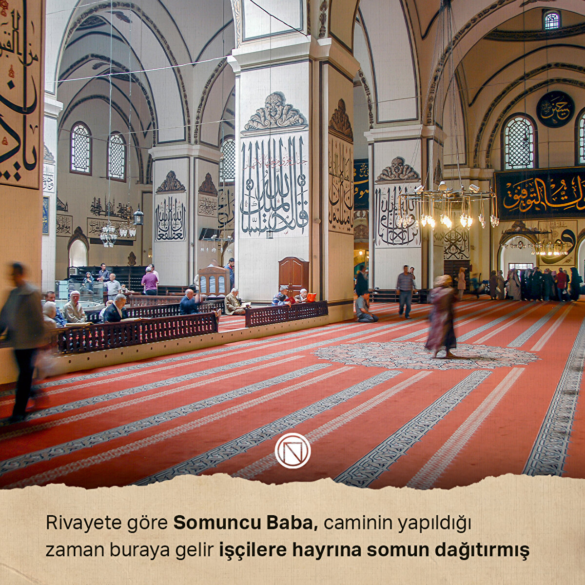 Camide yer alan 'vav' harfi ile ilgili yüzyıllardır anlatılan bir rivayet var. Rivayete göre Somuncu Baba, caminin yapıldığı zaman buraya gelir işçilere hayrına somun dağıtırmış.