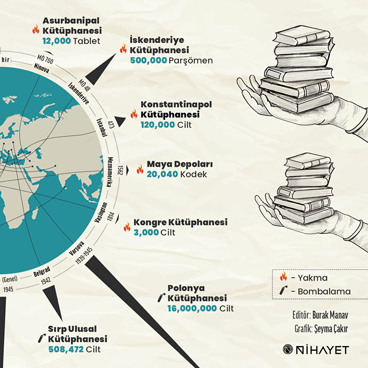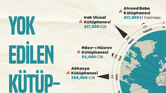 Savaşlar başka pek çok zararının dışında, kültürel birikimlerin yok olmasına da neden oluyor. Tarih boyunca yok edilmiş kütüphaneleri derledik.