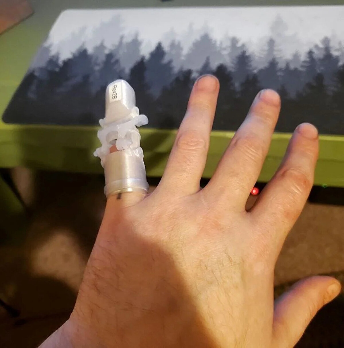 ABD'de Adam Cutshall, bundan 20 yıl önce küçük oğlu için mini bir golf sahası inşa ederken elini, kullandığı elektrikli alete kaptırmış ve parmağının bir kısmını kaybetmişti. Cutshall, bir forumda yaptığı çağrının ardından 3 boyutlu yazıcıyla yapılan parmağına kavuştu. Üstelik sigorta şirketinin 20 bin dolar fatura çıkardığı ve masrafları karşılamadığı parmak çok daha ucuza mal edildi.