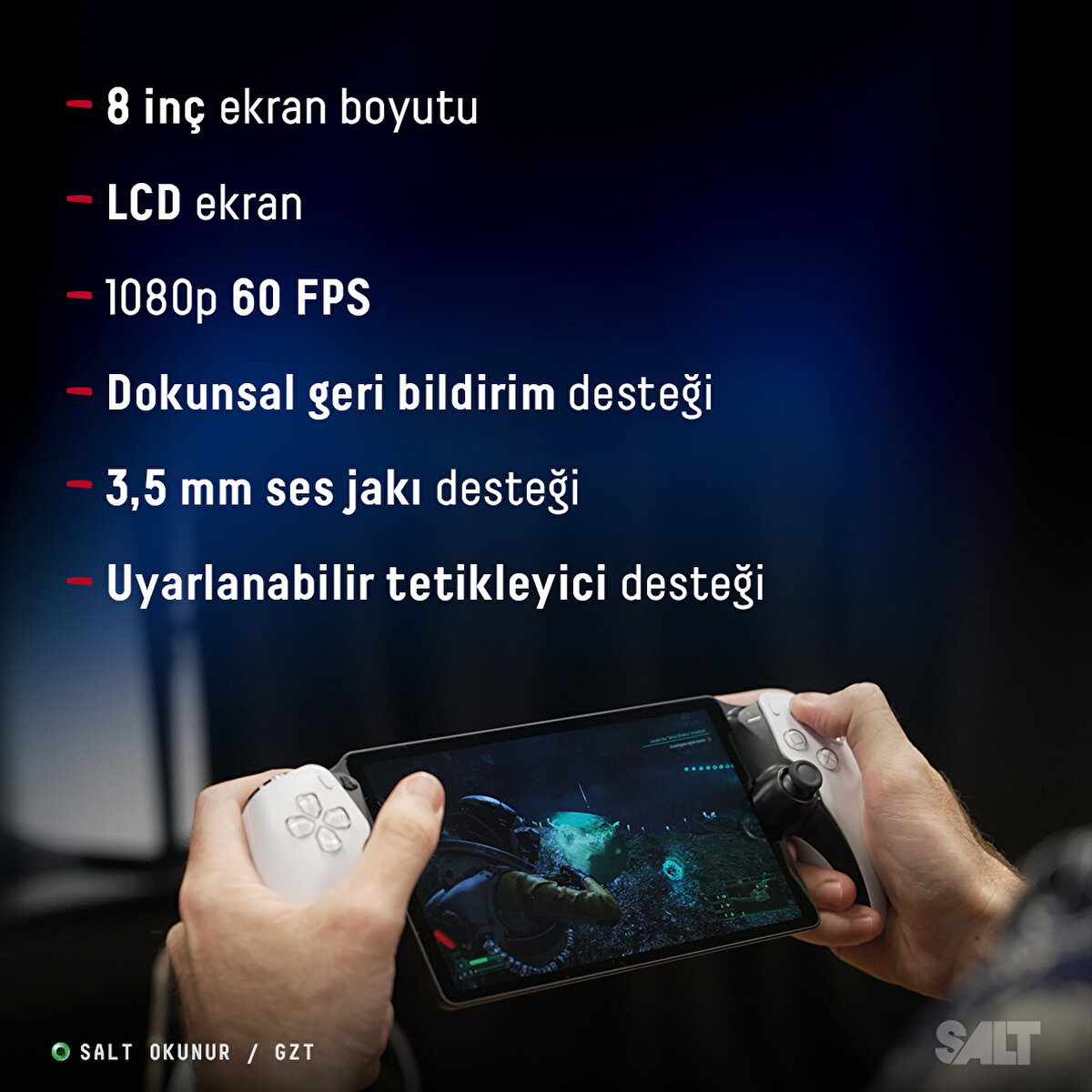 Sony'nin taşınabilir konsolu Playstation Portal resmen tanıtıldı. PS5 oyunlarını Wİ-Fİ üzerinden oynayabilme imkanı sunan PS Portalın satış fiyatı 199.99$ olarak açıklandı İşte Playstation Portal'ın bazı özellikleri: 8 inç ekran boyutuLCD ekran1080p 60 FPSDokunsal geri bildirim desteği3,5 mm ses jakı desteğiUyarlanabilir tetikleyici desteği