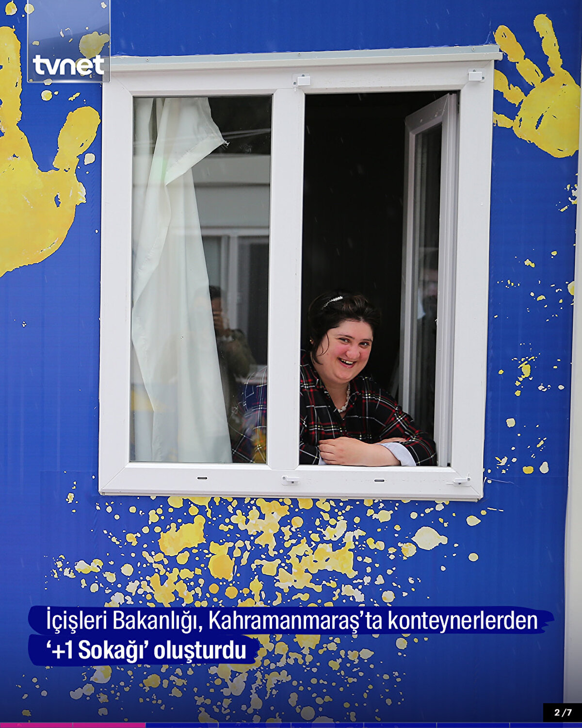 6 Şubat'ta meydana gelen depremlerin merkez üssü Kahramanmaraş'ta, İçişleri Bakanlığı tarafından 20 down sendromlu ve ailelerine konteynerlerden '+1 Sokağı' oluşturuldu. Ailelere sıcak yuva olan rengarenk bir görünüme sahip sokakta hobi bahçesi, kurs ve çocuk oyun alanları gibi sosyal mekanlar bulunuyor.
