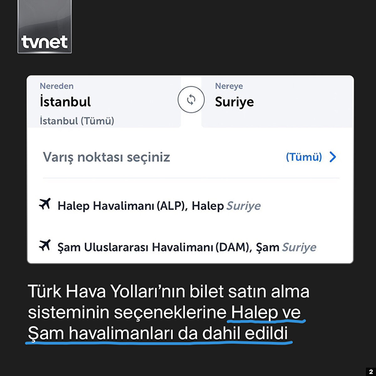 Türk Hava Yolları13 yıl aranın ardından Suriye'nin Şam ve Halep Havalimanı'na yeniden sefer düzenlemeye başladı.