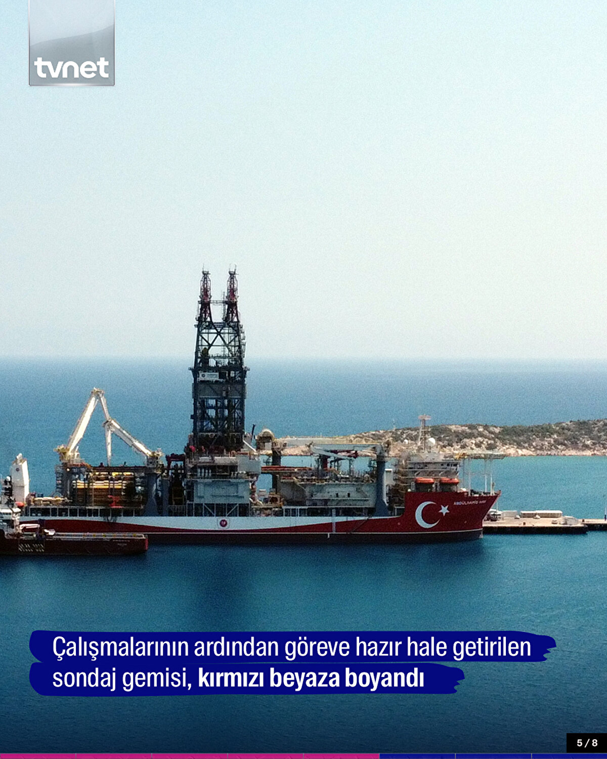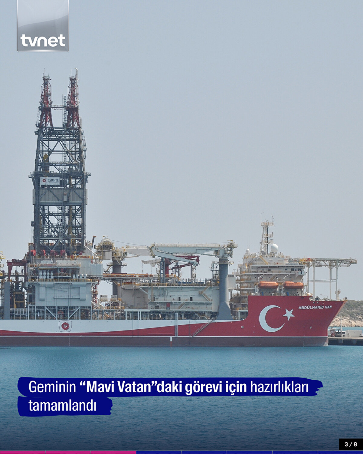 Türkiye'nin hidrokarbon arama çalışmalarına katılacak 4. sondaj gemisi Abdülhamid Han'ın "Mavi Vatan"daki görevi için hazırlıkları tamamlandı.