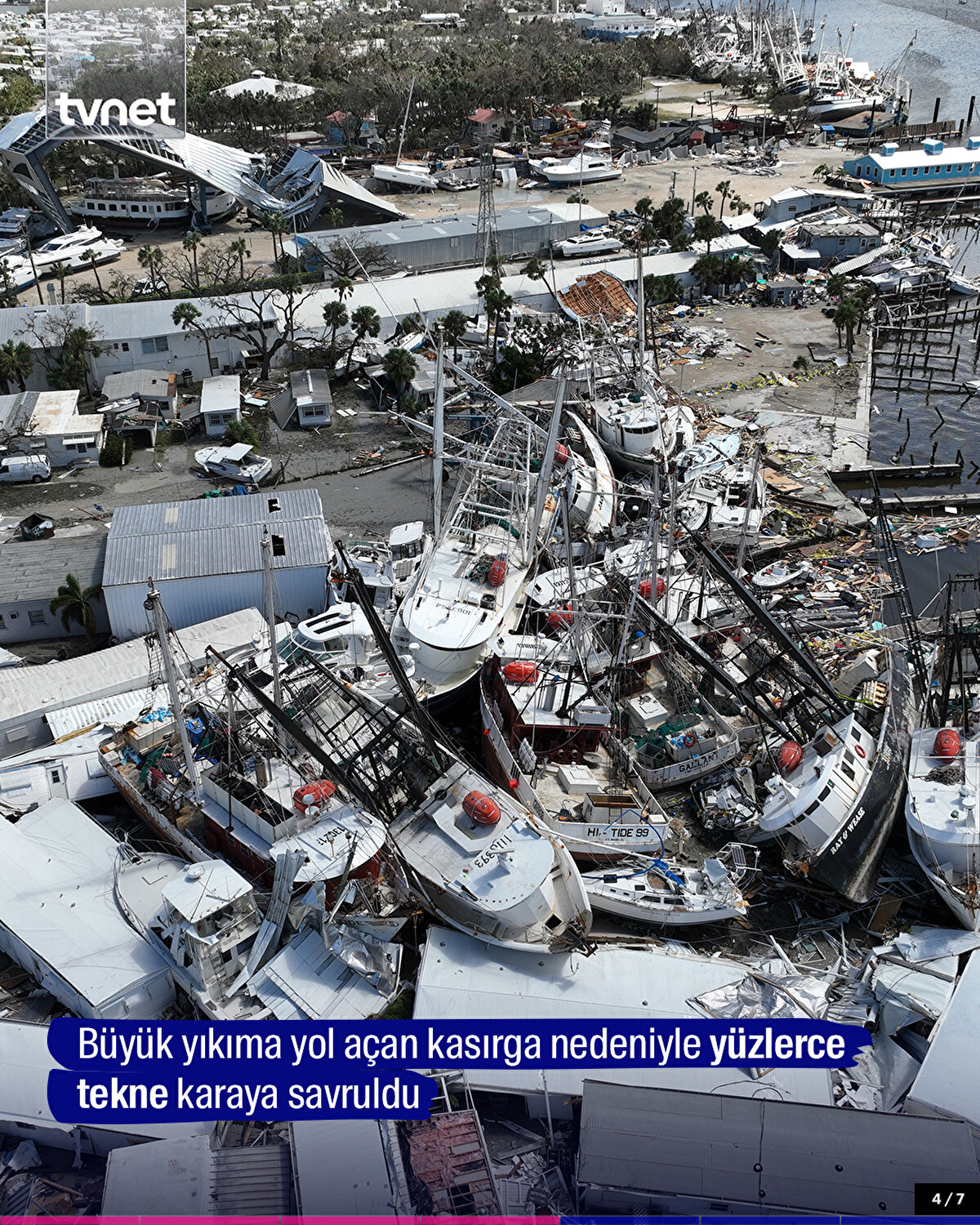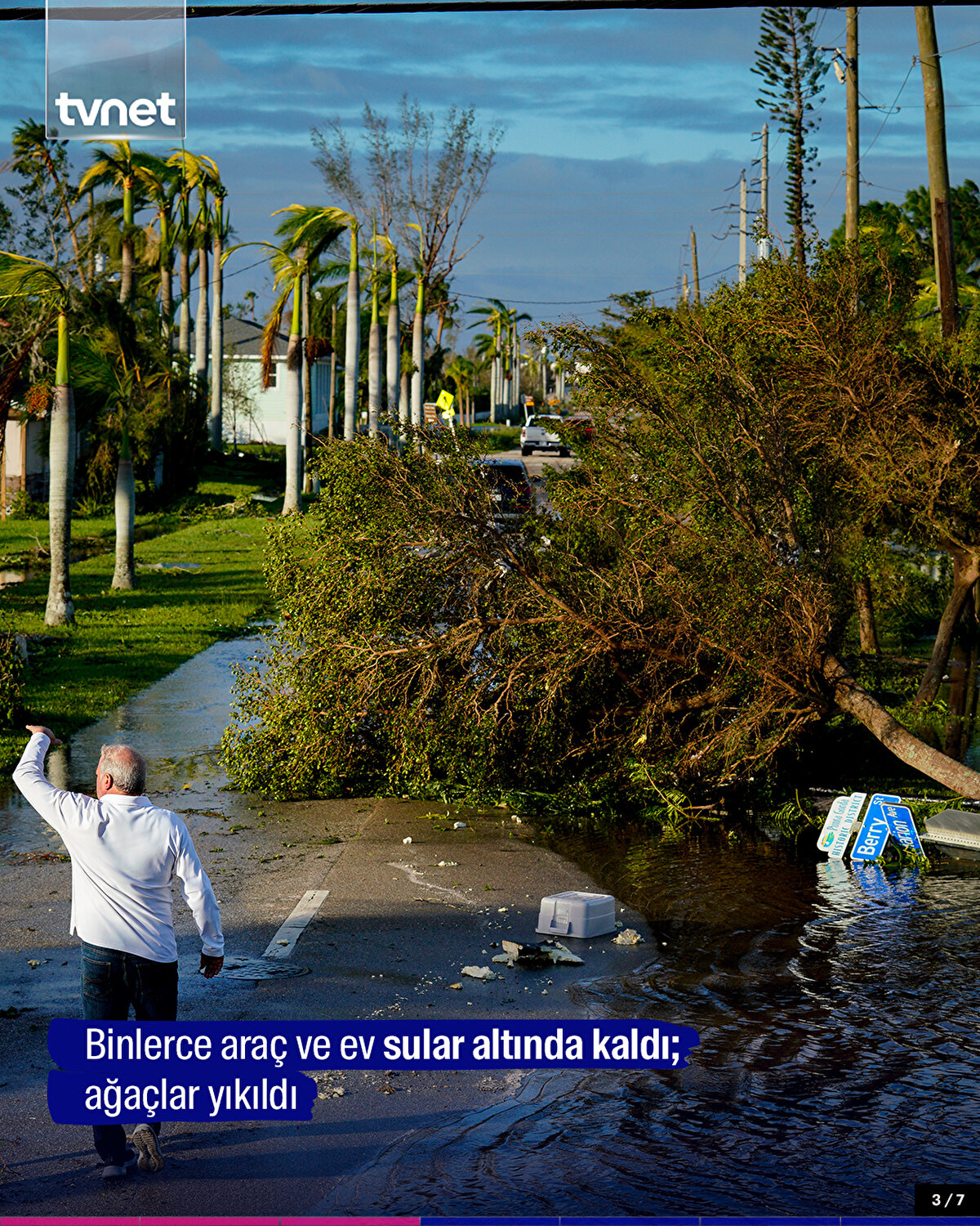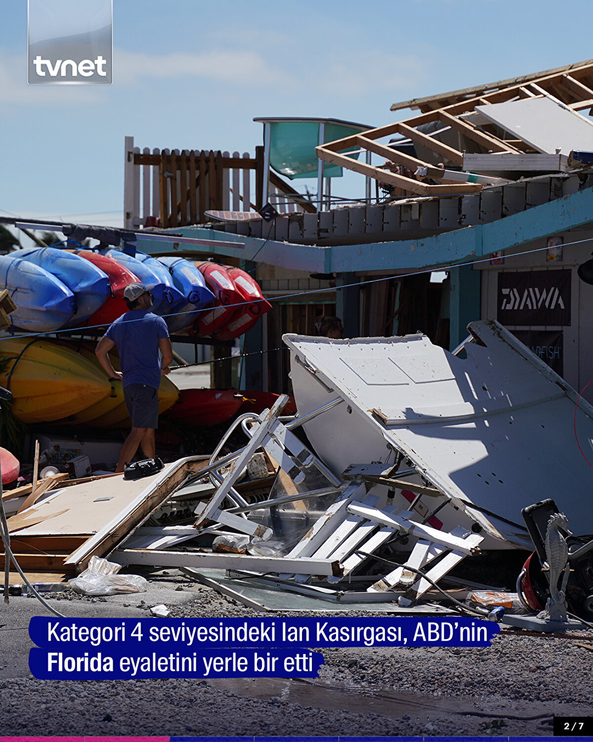 ABD'nin Florida eyaletinde etkili olan Ian Kasırgası sebebiyle yaklaşık 1,9 milyon haneye elektrik verilemedi. Saatteki hızı 241 kilometreyi bulan kasırga nedeniyle tekneler karaya vurdu, evler ve arabalar sular altında kaldı.