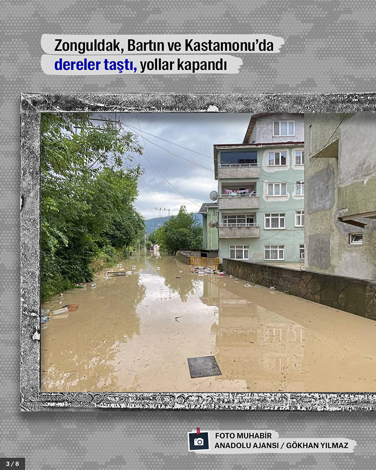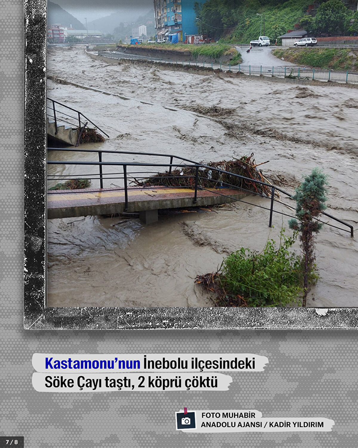 Karadeniz'de şiddetli sağanak etkili oluyor. Kastamonu'nun İnebolu ilçesindeki Söke Çayı taştı, 2 köprü çöktü. Sağanak nedeniyle iş yerlerinin açılmaması ve birinci katta oturan vatandaşların üst katlara çıkması uyarısı yapıldı.