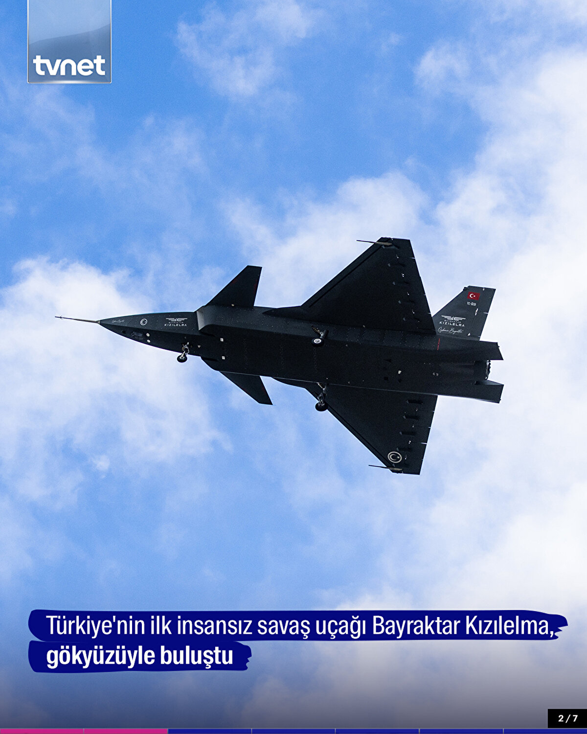 Baykar'ın yerli ve milli olarak geliştirdiği Türkiye'nin ilk insansız savaş uçağı Bayraktar Kızılelma, gökyüzüyle buluştu.