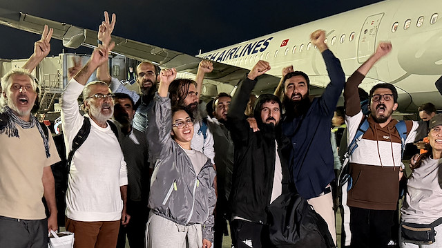 Küresel Sumud Filosu aktivisti 15 Türk vatandaşını taşıyan THY uçağı İstanbul'a ulaştı. Vatan toprağına kavuşan aktivistler derin bir nefes aldı