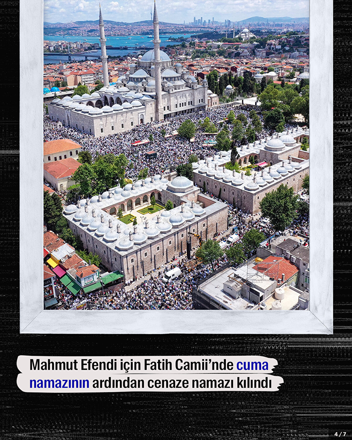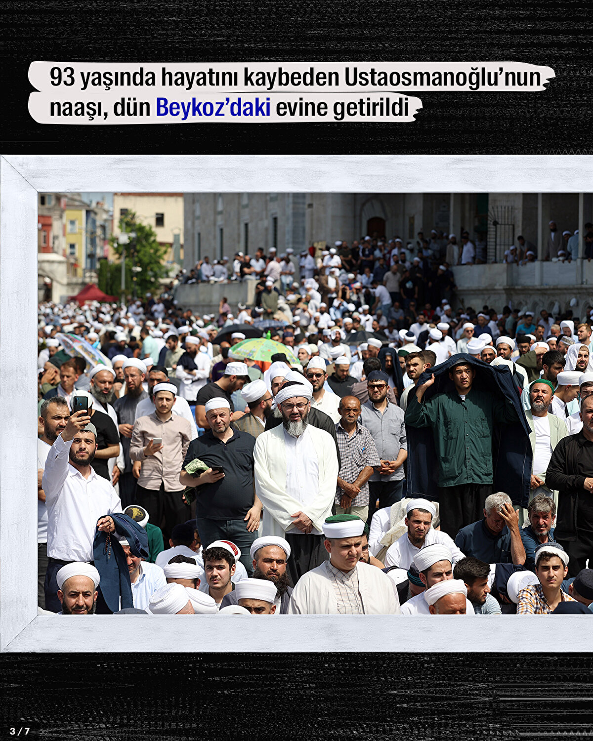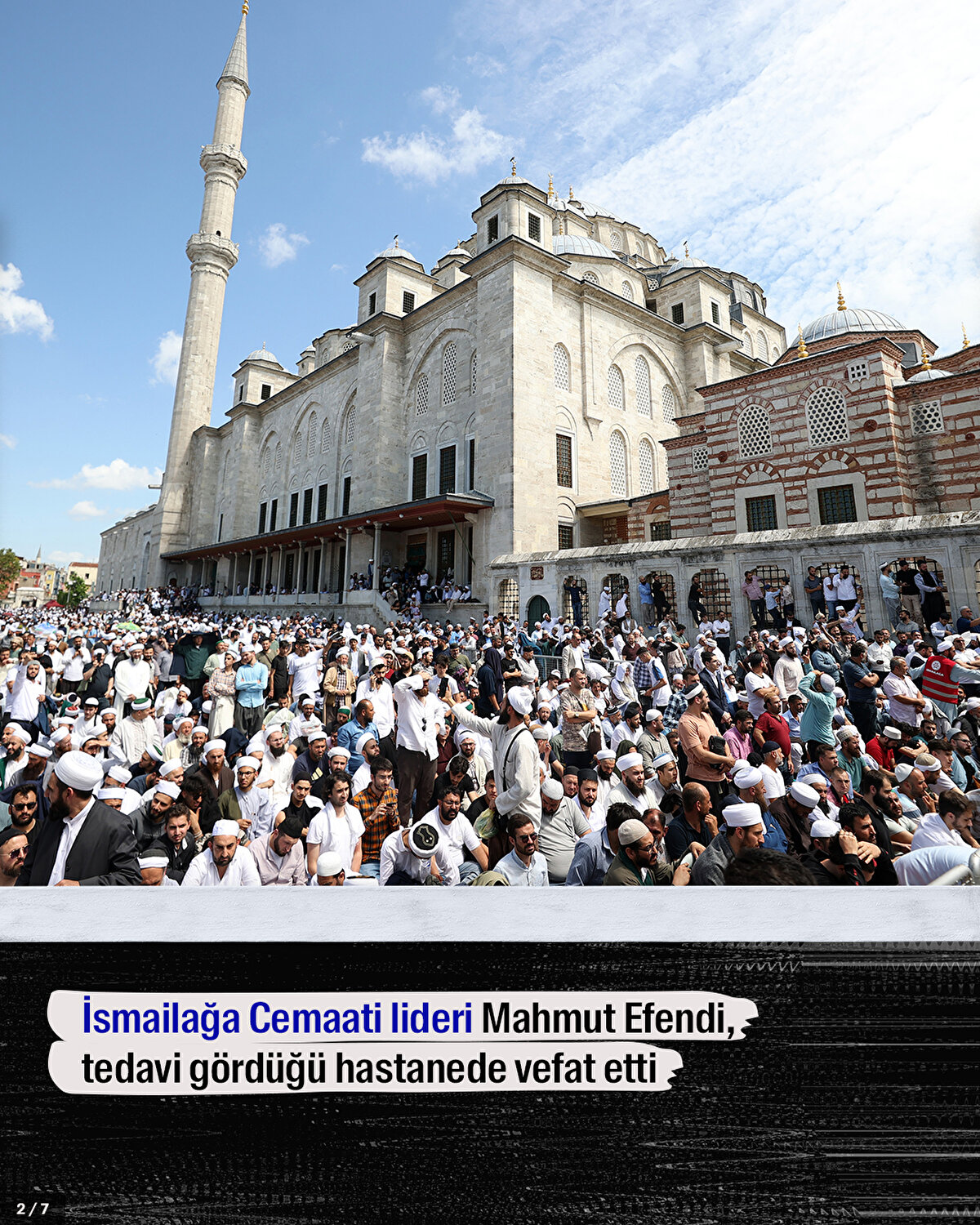 İsmailağa Cemaati lideri Mahmut Ustaosmanoğlu Hoca Efendi'nin cenazesi bugün Cuma namazını müteakip Fatih Camii'nde kılındı. Mahmutoğlu'nun cenazesi Ahıskalı Ali Haydar Efendi'nin yanı sıra aile kabristanının da bulunduğu Edirnekapı Sakızağacı Mezarlığı'na defnedilecek.
