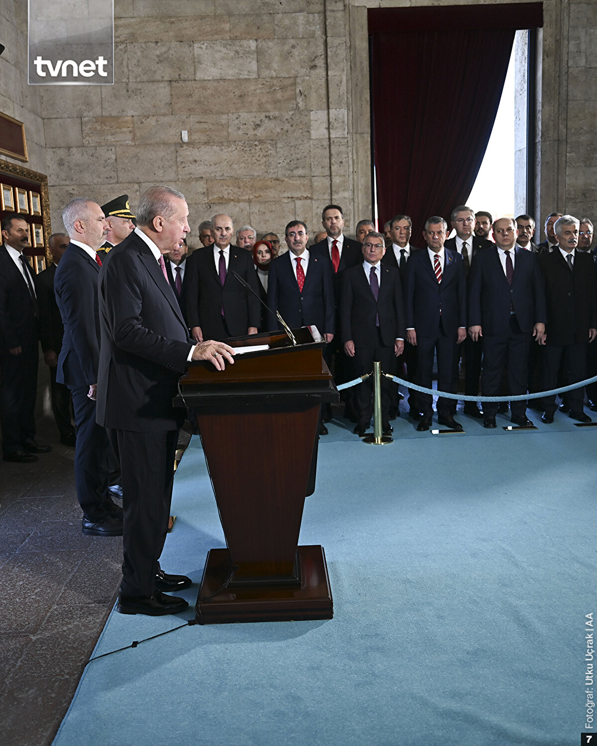 29 Ekim Cumhuriyet Bayramı ve Cumhuriyet'in ilanının 102'nci yıl dönümü kutlamaları kapsamında ilk tören, Anıtkabir'de düzenlendi. Tören, devlet erkanının Aslanlı Yol'da yürüyüşüyle başladı.