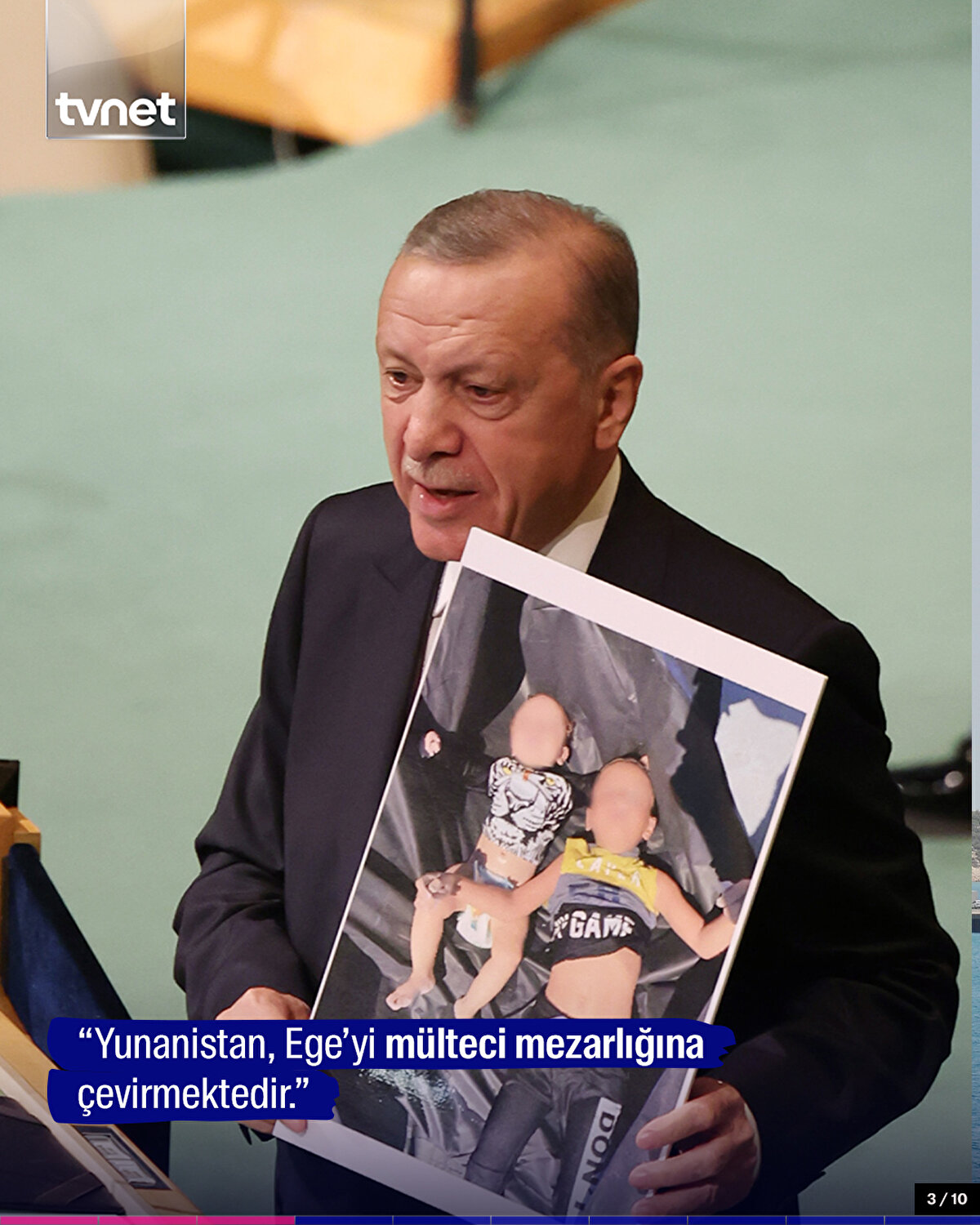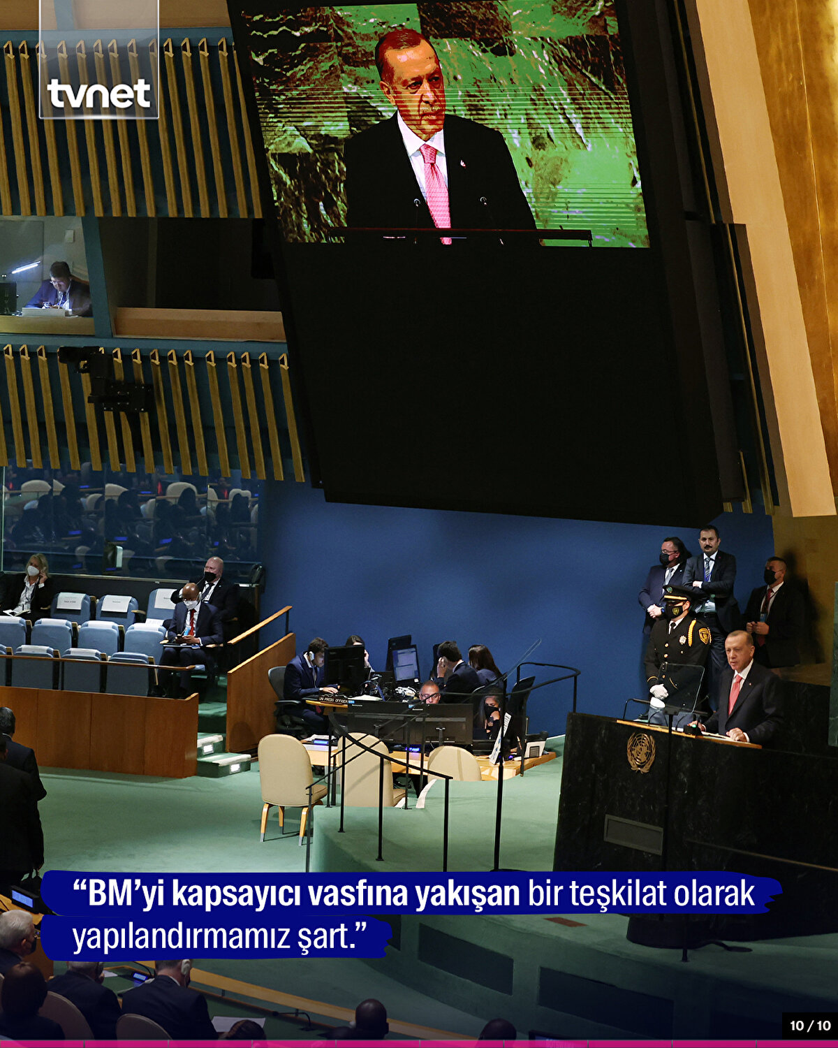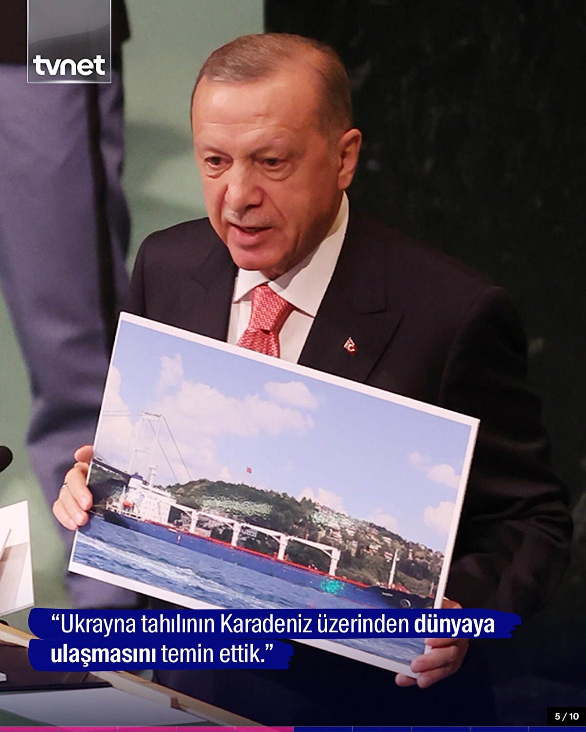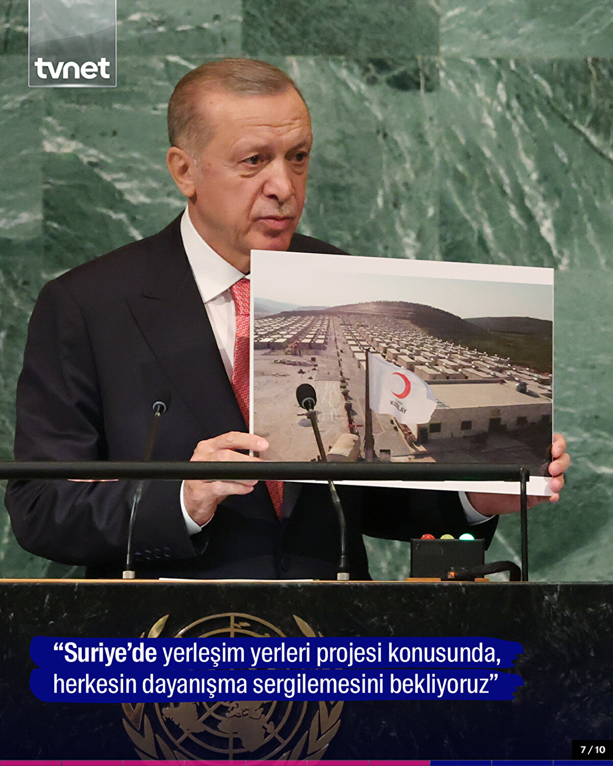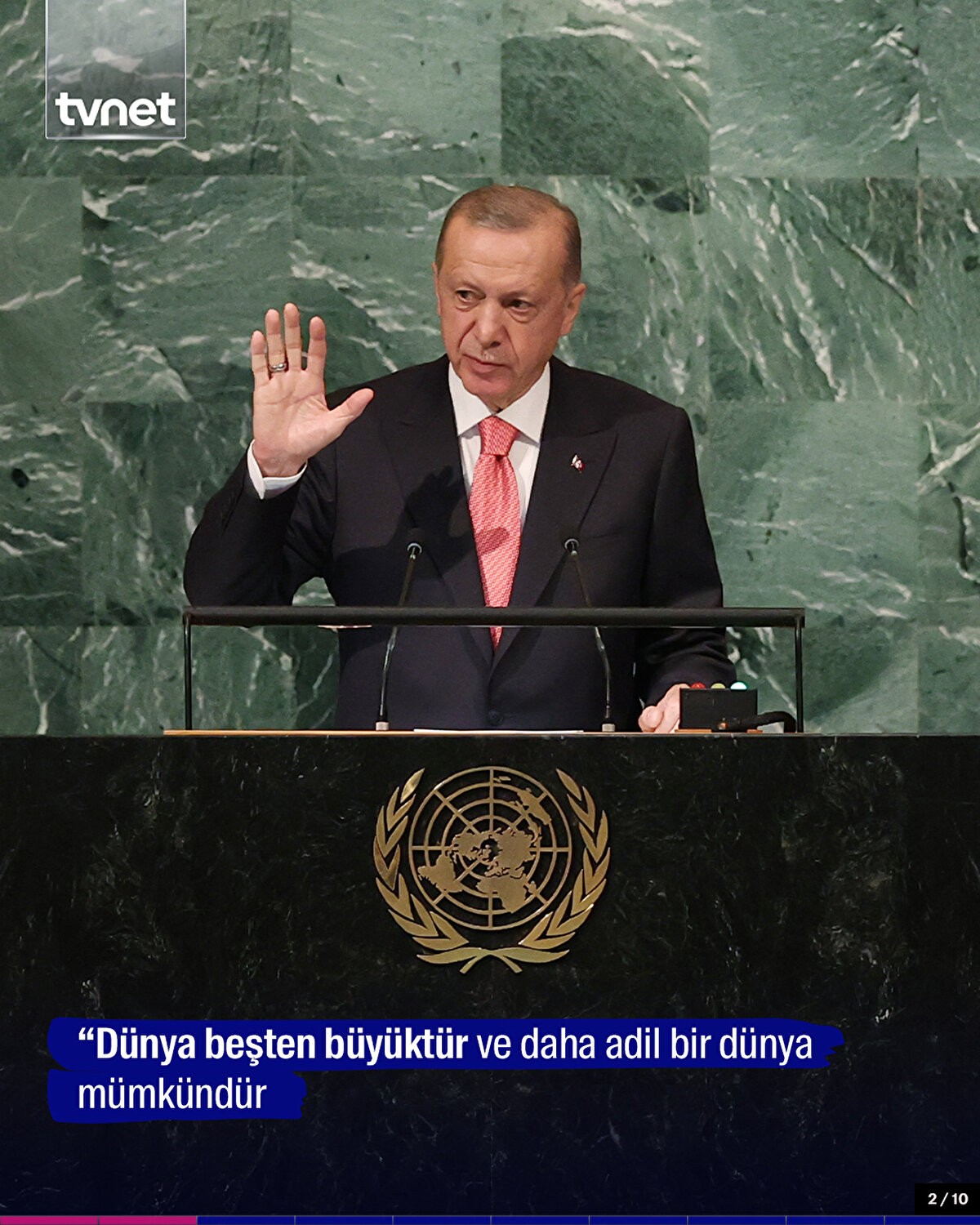 Birleşmiş Milletler 77. Genel Kurulu'nda dünya liderlerine seslenen Cumhurbaşkanı Erdoğan, tahıl koridoru, Suriye'deki briket evler, Yunan sahil güvenlik güçlerinin botlarını batırması sonucu vefat eden 9 aylık Asım ve ağabeyi gibi birçok konuya değindi.