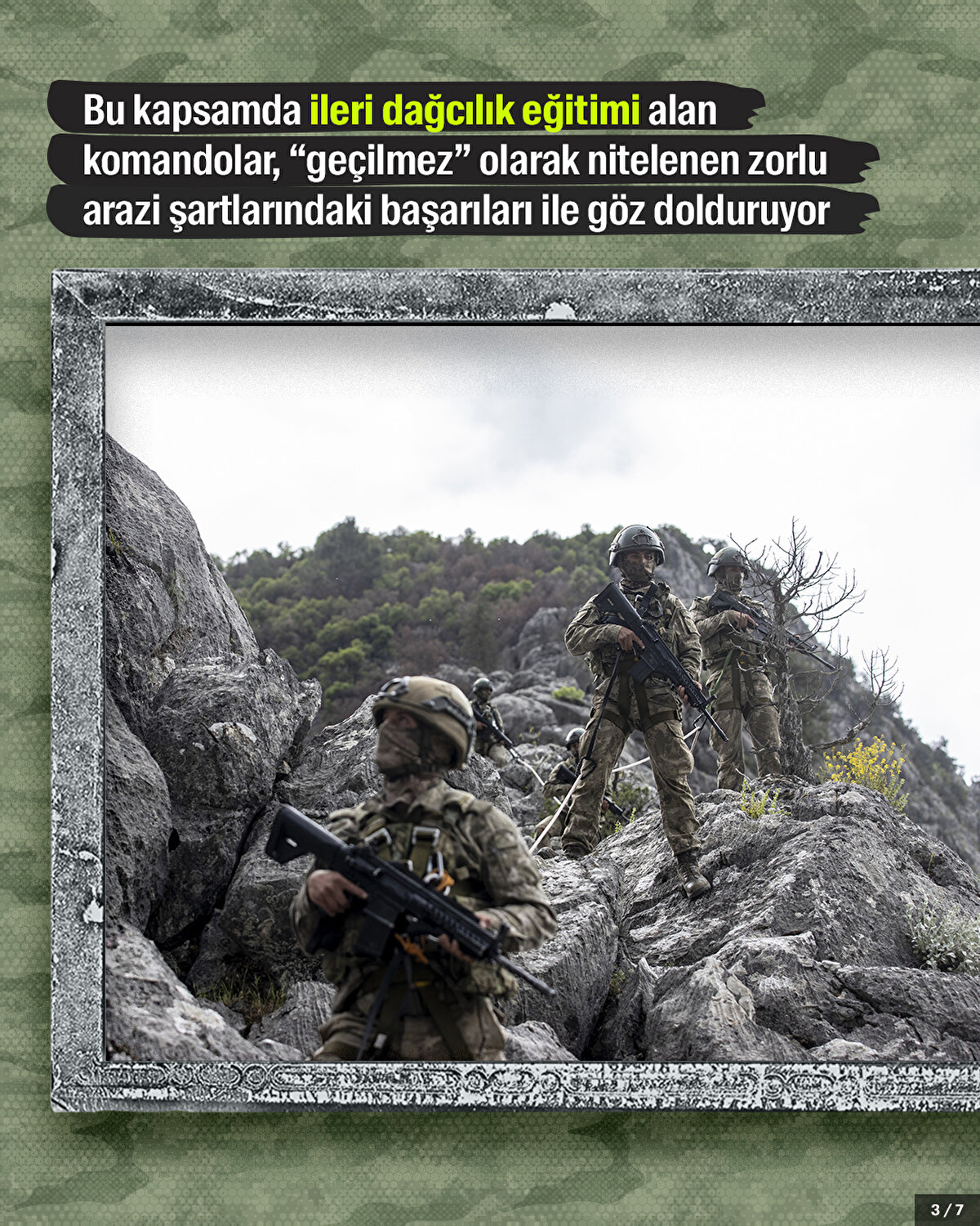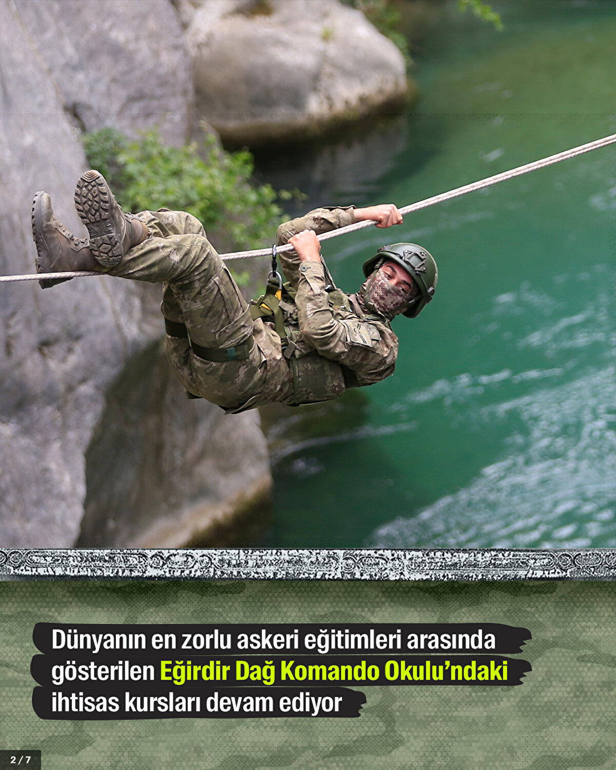 Isparta Eğirdir Dağ Komando Okulu ve Eğitim Merkez Komutanlığı'nda gördükleri zorlu eğitimlerle terörle mücadelenin en önemli unsurlarından biri haline gelen komandolar, ileri dağcılık kursundaki başarıları ile dosta güven düşmana korku veriyor.