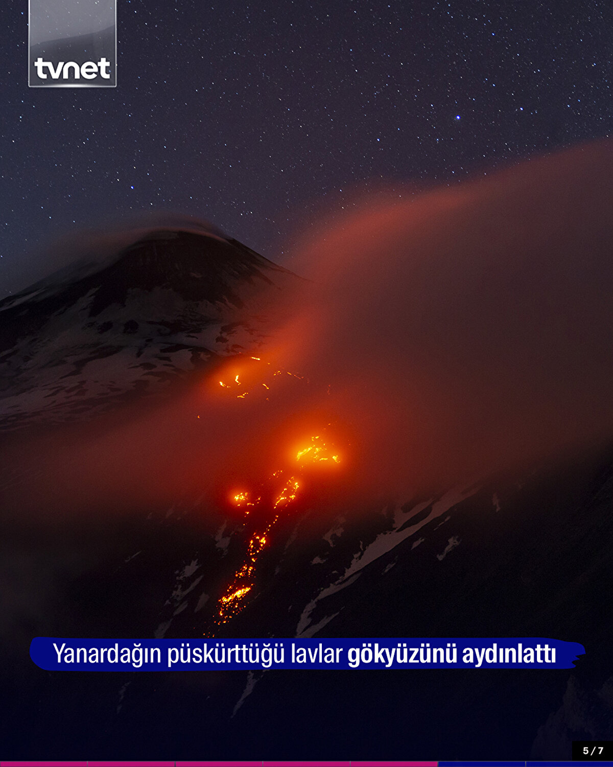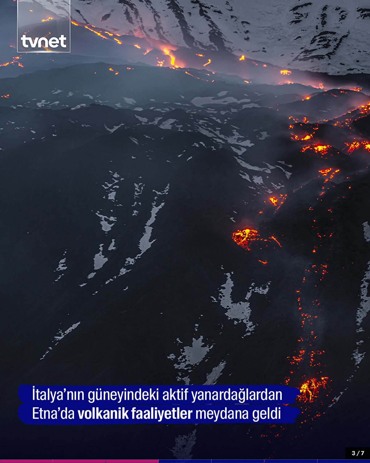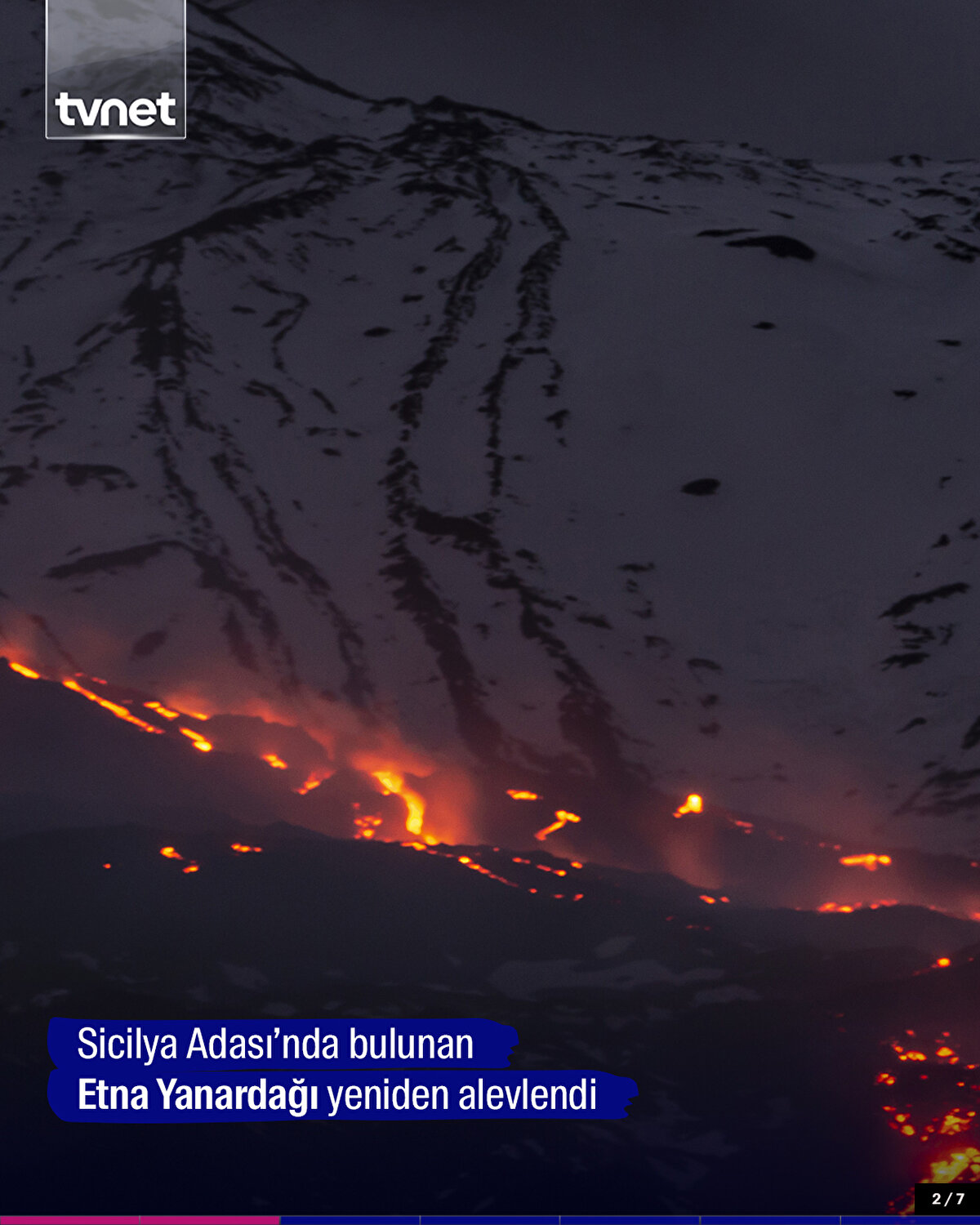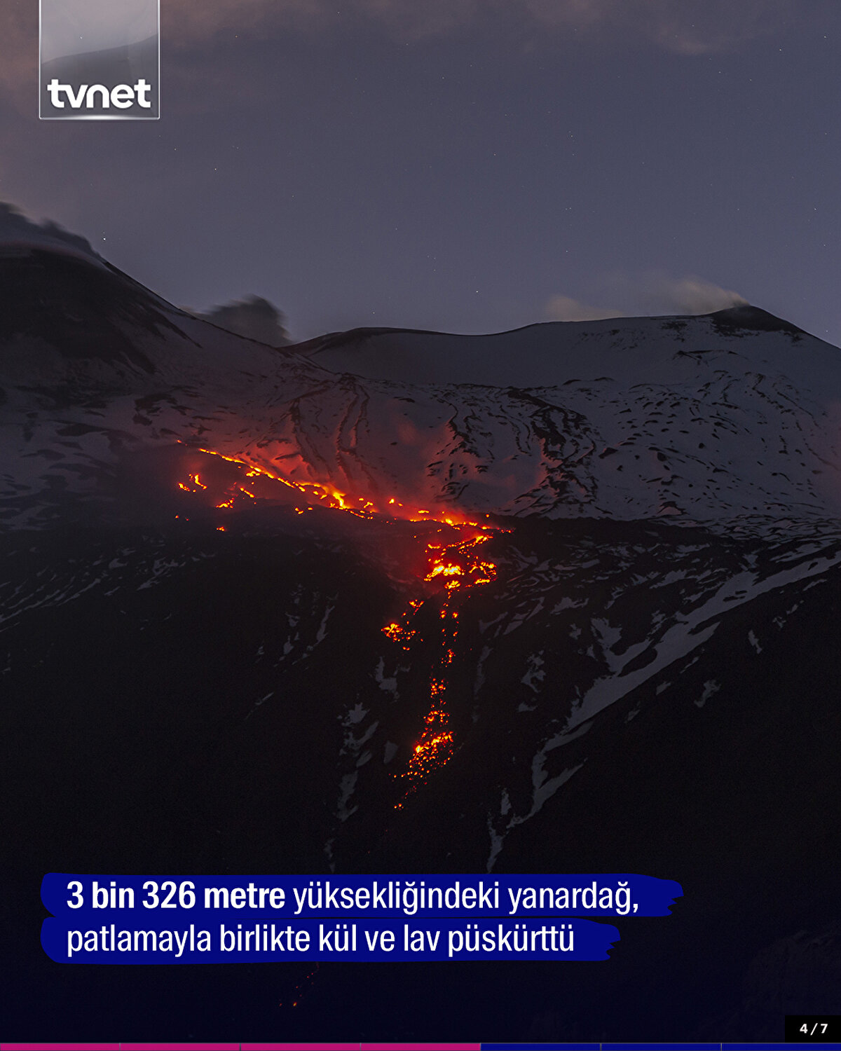 İtalya'nın Sicilya Adası'nda bulunan Etna Yanardağı, yeniden alevlendi. 3 bin 326 metre yüksekliğindeki yanardağ, patlamayla birlikte kül ve lav püskürttü.