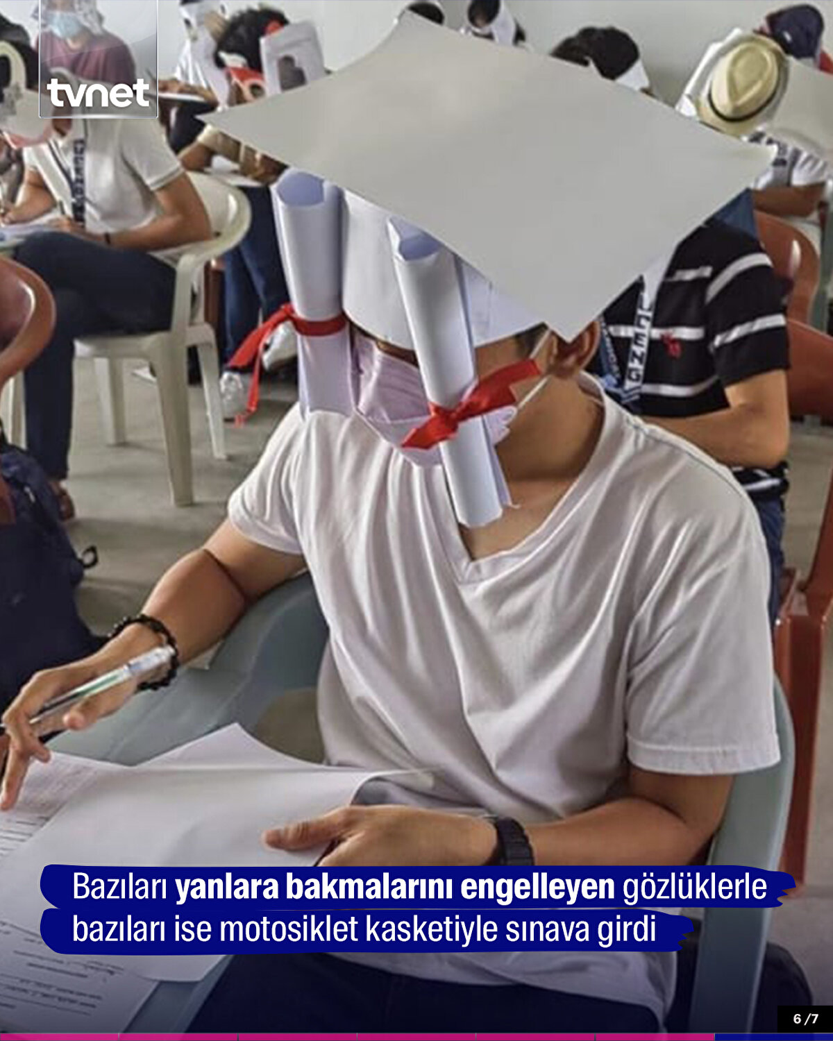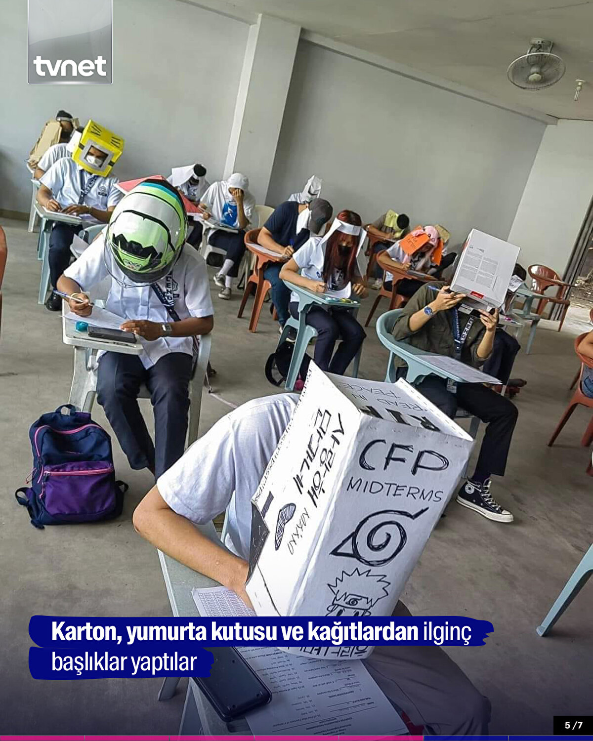 Filipinler’de öğrenciler, sınava kendi yaptıkları ‘kopya engelleyici şapkalar’ ile girdi