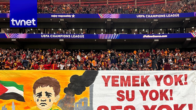 Sarı-kırmızılı taraftarlar Filistin'e destek pankartları açtı.