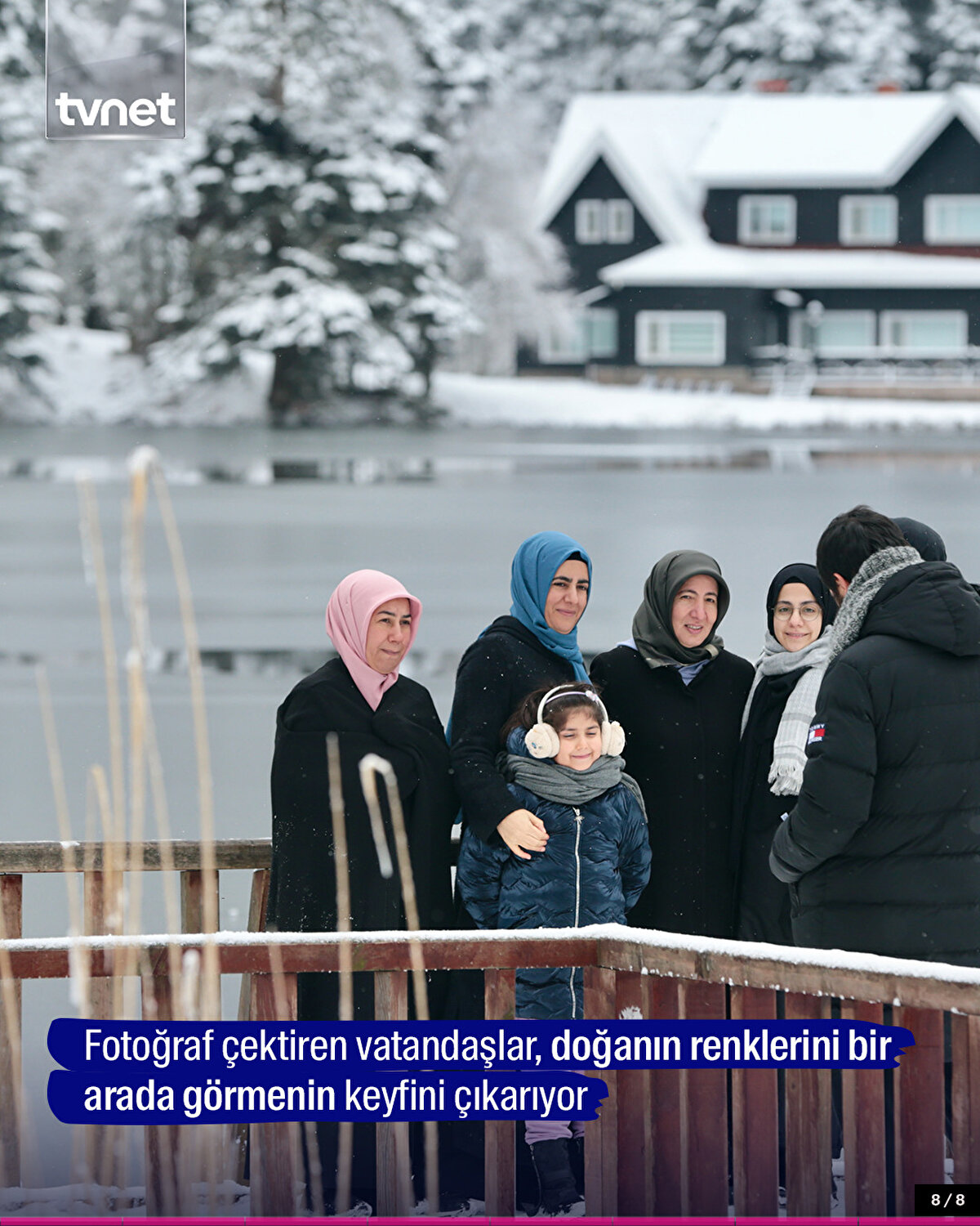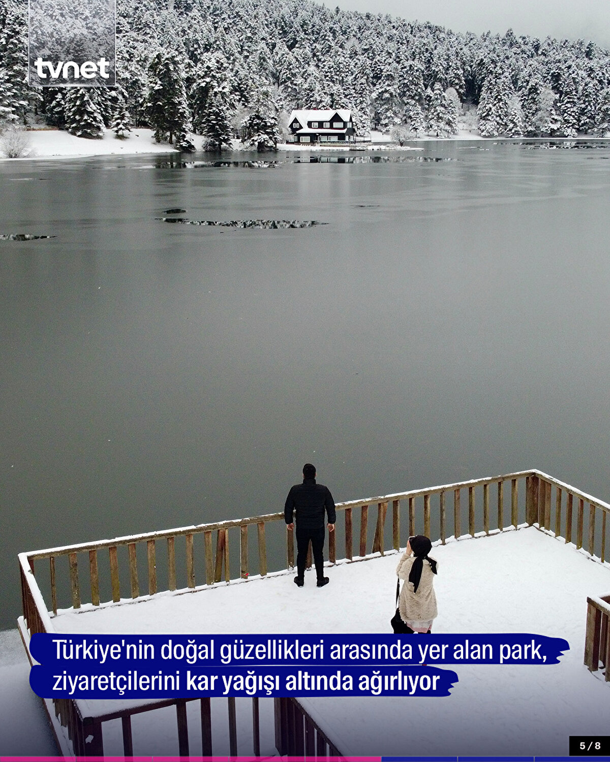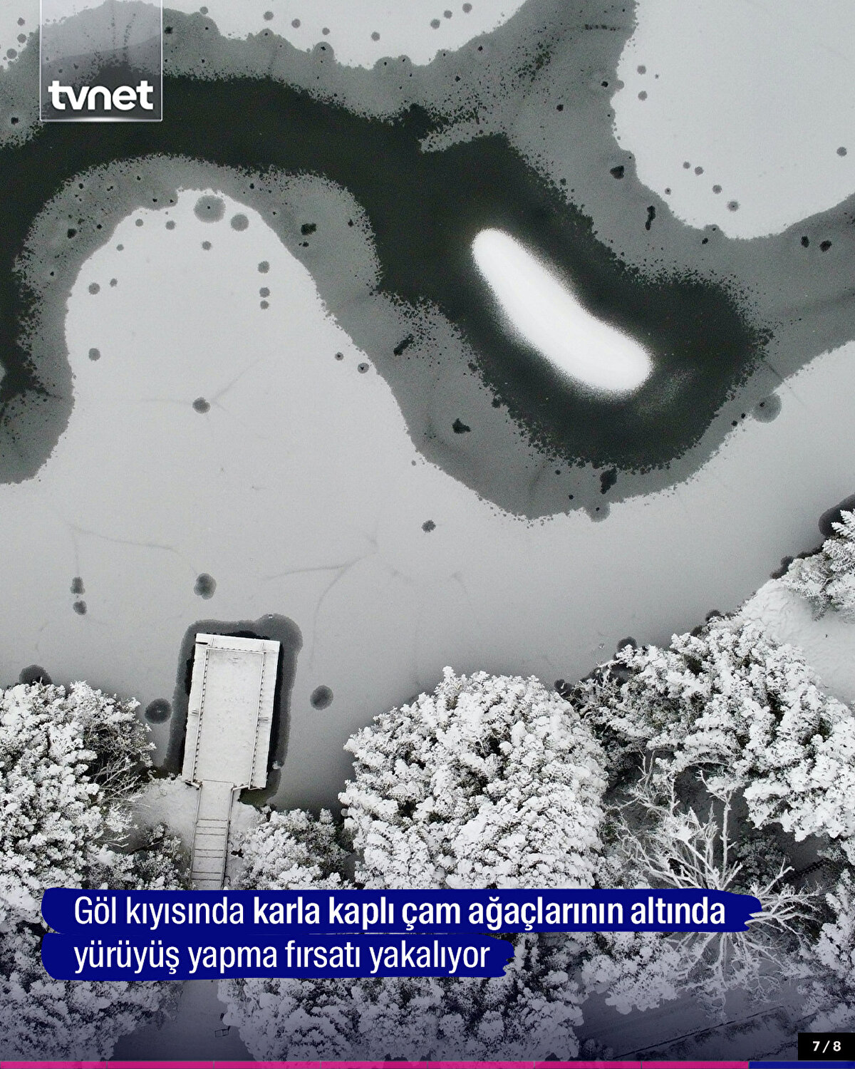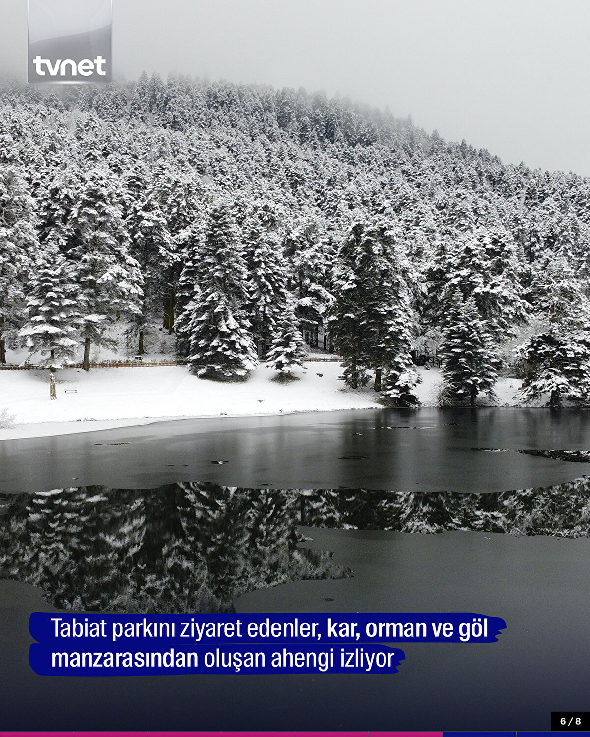 Gölcük Tabiat Parkı'nı ziyaret edenler, kar, orman ve göl manzarasıyla oluşan ahengi izleme fırsatı buldu.