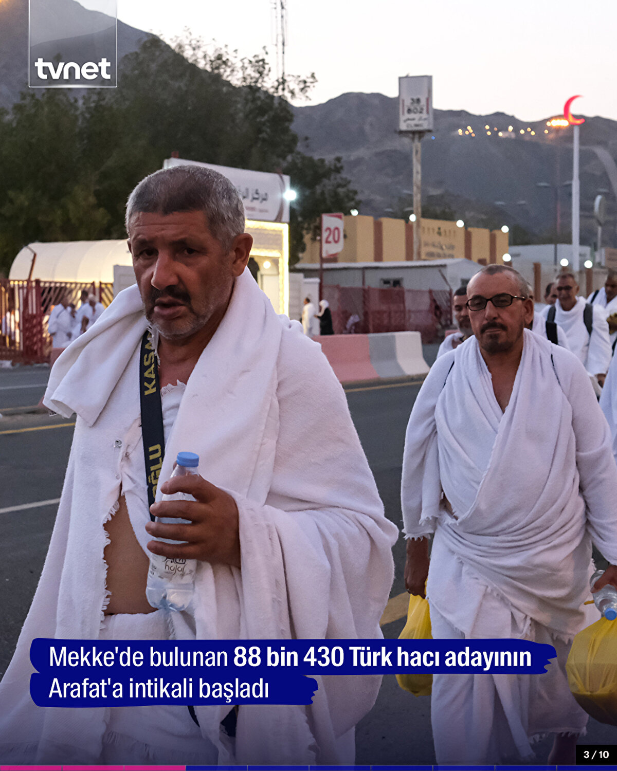 Hac farizasını yerine getirmek üzere Suudi Arabistan'da bulunan hacı adaylarının haccın en önemli rükünlerinden olan Arafat'a intikali başladı.