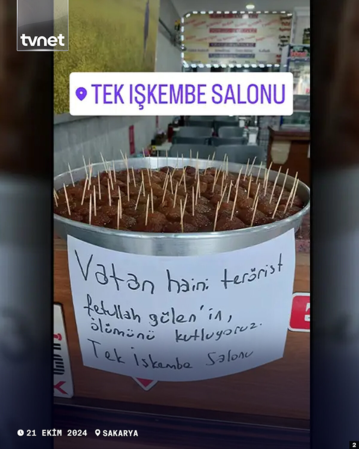 Terörist elebaşı Fethullah Gülen'in ölümü üzerine Fırat Kalkanı Harekatı bölgesinde tatlı dağıtılırken, Türkiye'nin farklı ilçelerinde esnaflar kampanya, yemek restoranları lokma yapıp dağıttı.