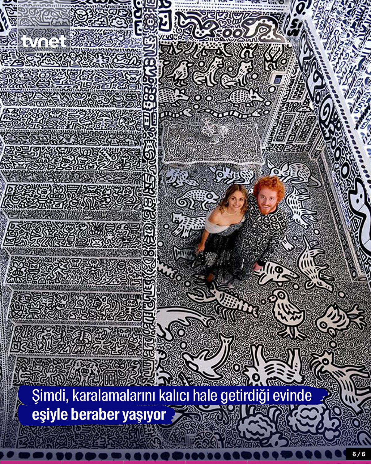 İngiliz sanatçı, tüm evini kendi çizimleriyle kapladı
