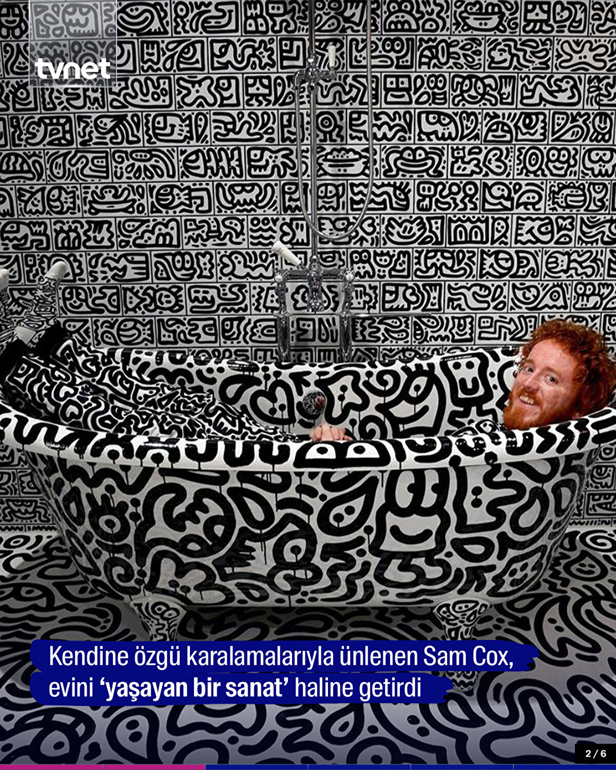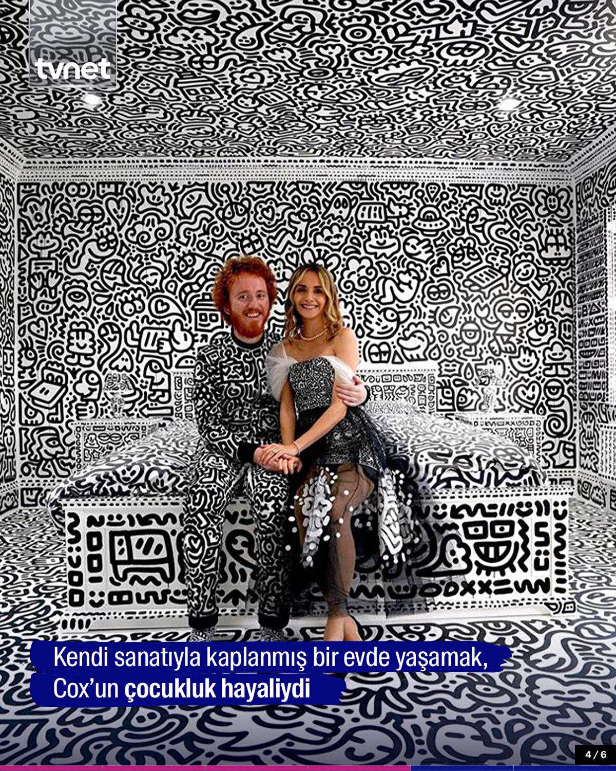 İngiliz sanatçı Sam Cox, 3 yılda 12 odalı evinin her köşesini kendi çizimleriyle kaplayarak çocukluk hayalini gerçekleştirdi.